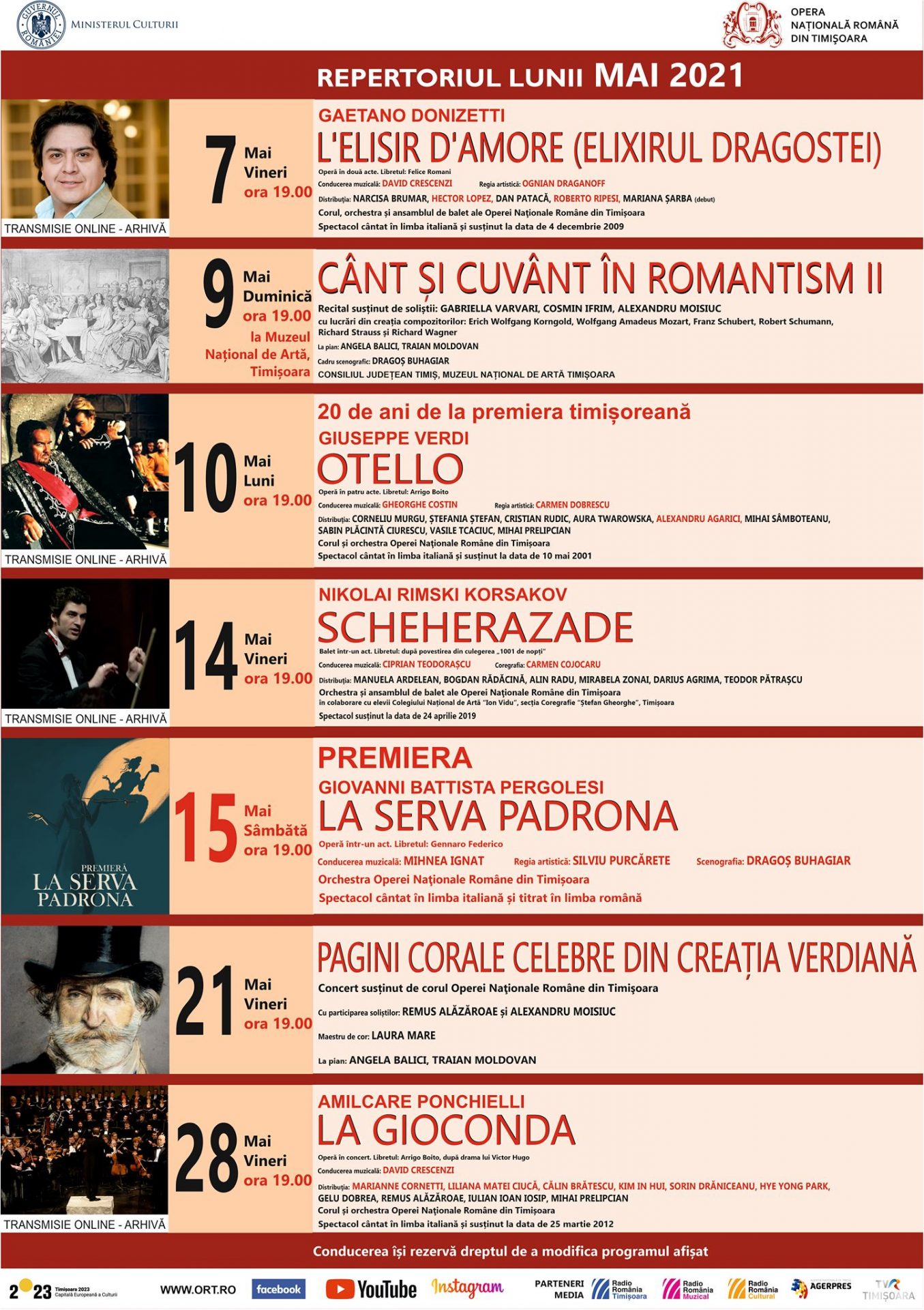 Duminică – Vineri 11:00-19:00 ; Sâmbătă – închis. Telefon: 0256.20.12.86. E-mail: bileteoperatimisoara@yahoo.com