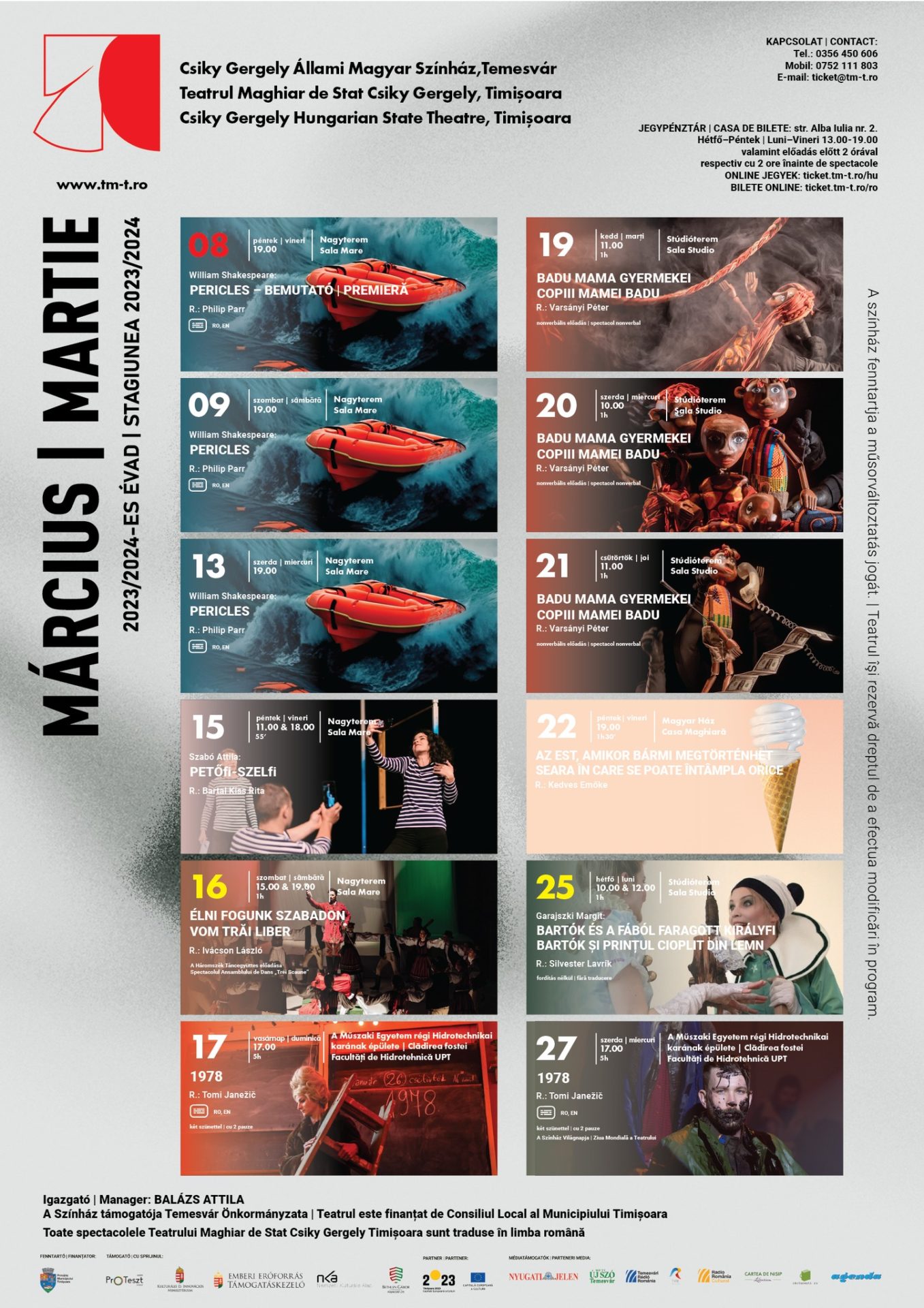 Programul lunii martie al Teatrului Maghiar Timișoara