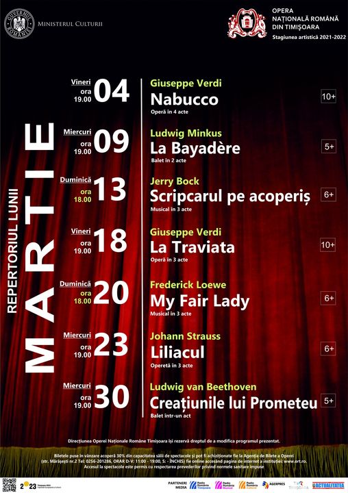 Programul lunii martie la Opera Română Timișoara