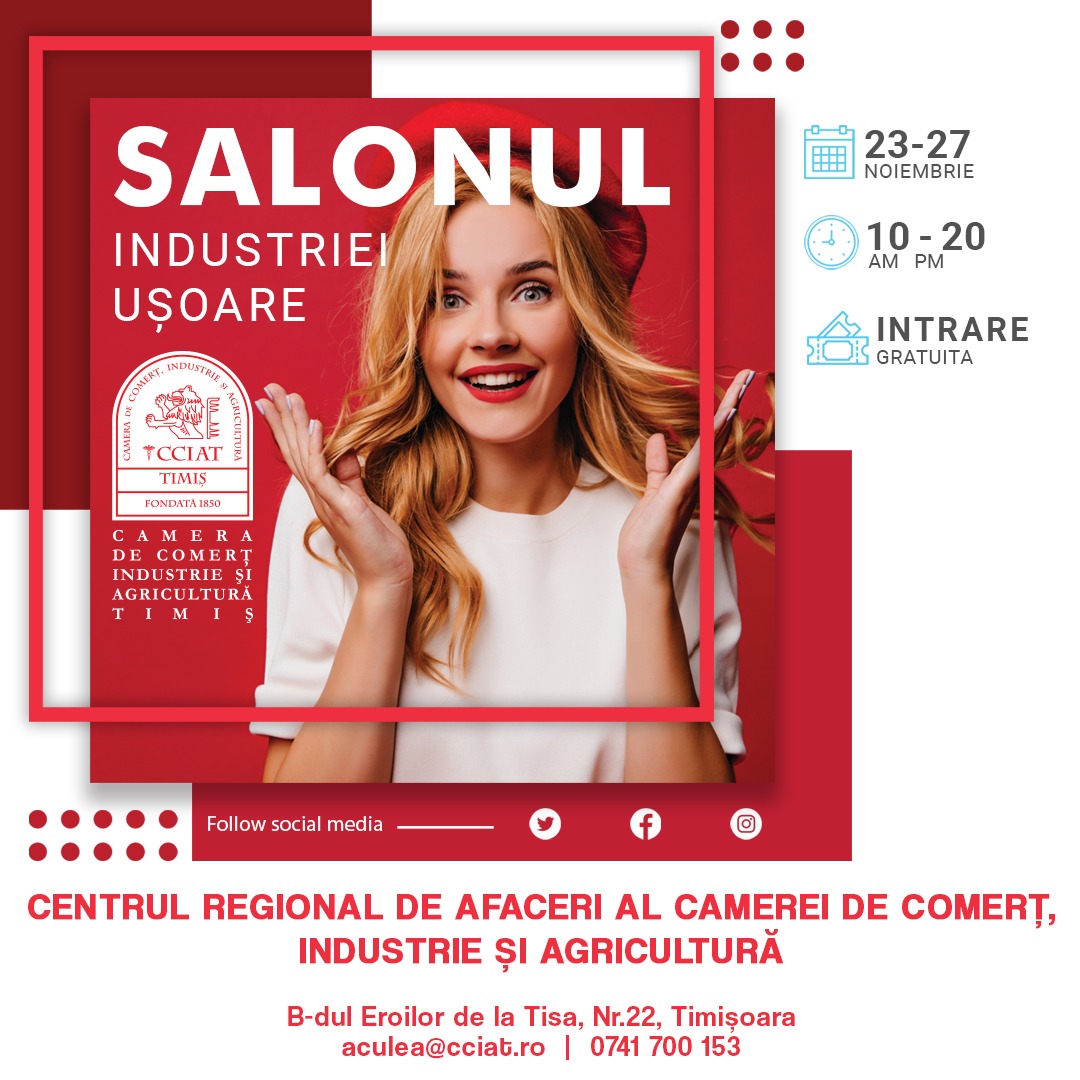 O nouă ediție a Salonului Industriei Ușoare va avea loc la Timișoara în perioada 23-27 noiembrie 2022 la Centrul Regional de Afaceri. Participă peste 50 de companii dinjudețul Timiș, dar și din țară.