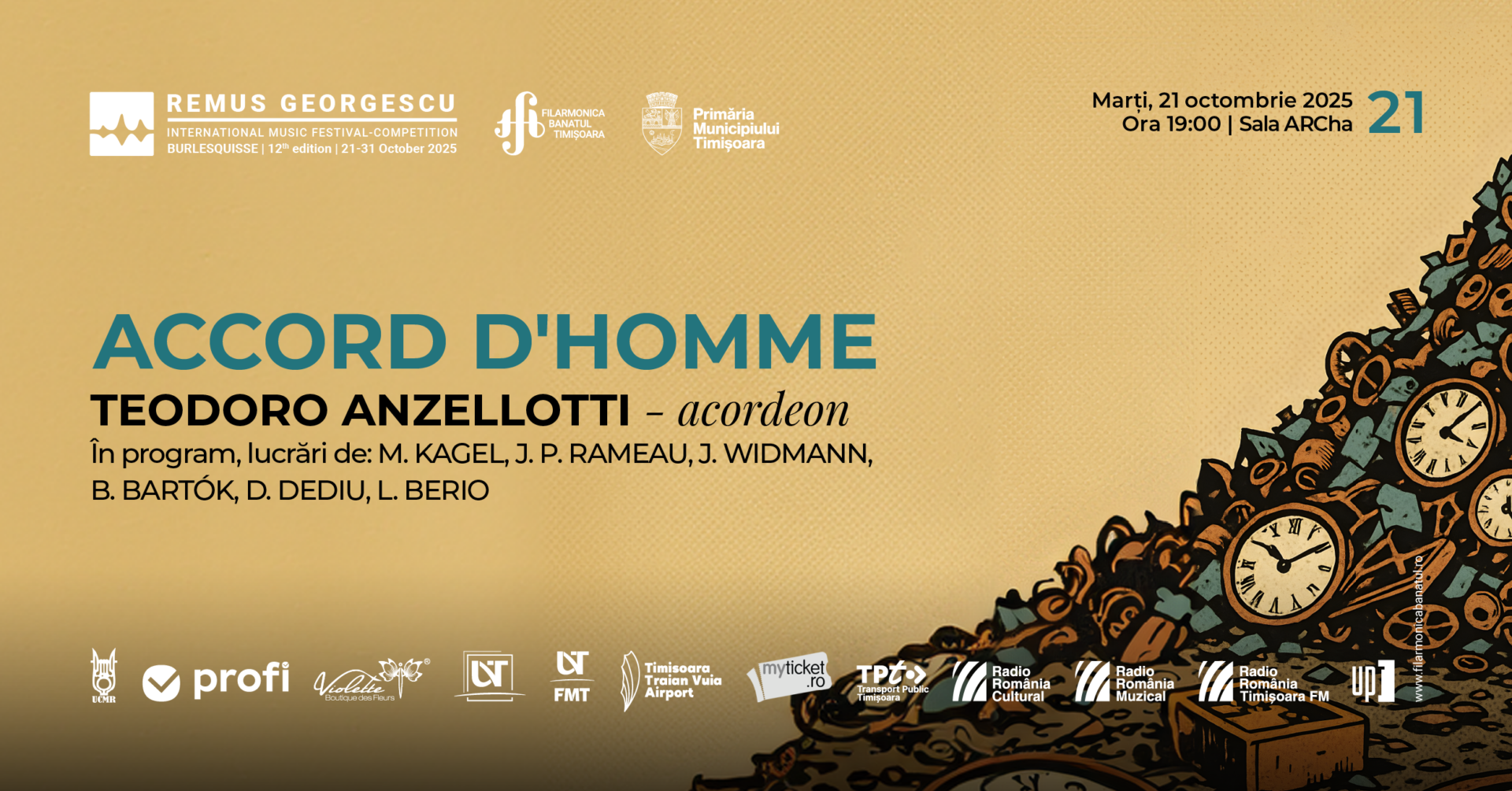 Evenimentul deschide ediția a XII-a a Festivalului-Concurs Internațional „Remus Georgescu”, intitulată Burlesquisse. Acordeonistul Teodoro Anzellotti susține un recital solo cu lucrări de Mauricio Kagel, Jean P. Rameau, Jörg Widmann, Béla Bartók, Dan Dediu și Luciano Berio.