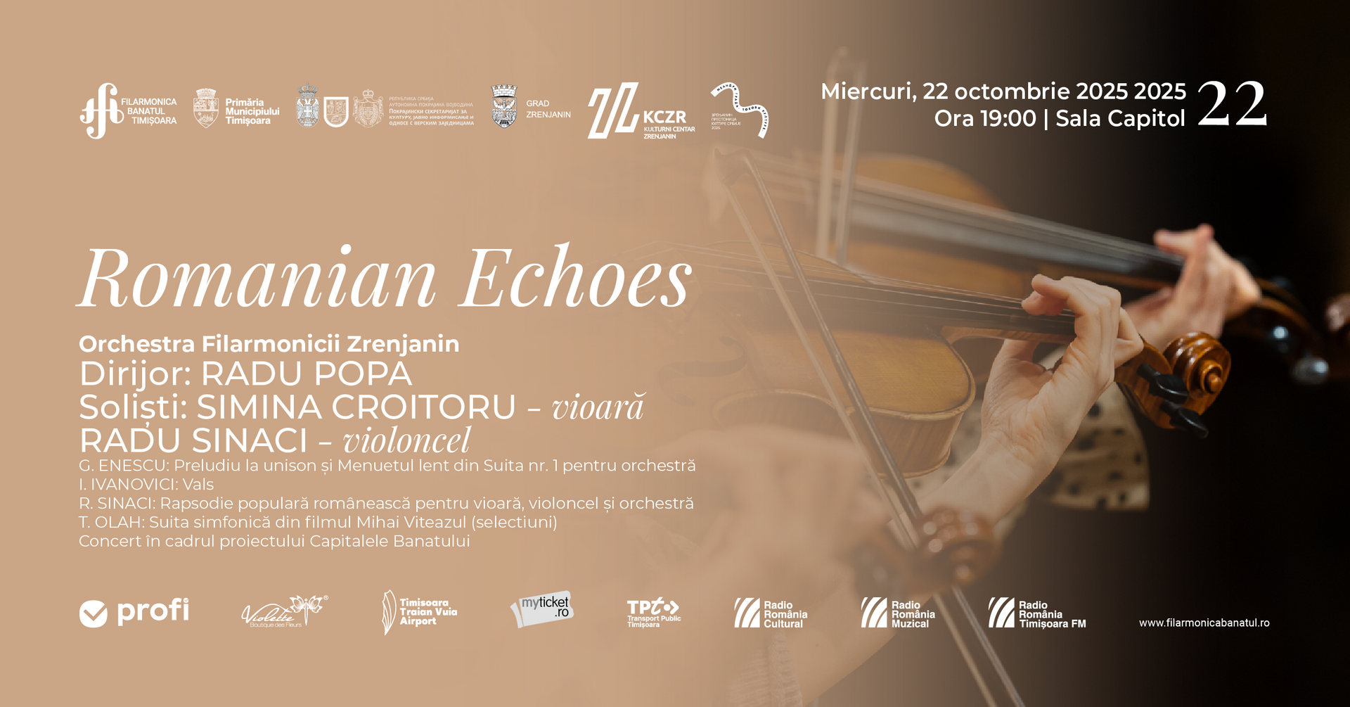 Săptămâna continuă cu un eveniment dedicat colaborării culturale România–Serbia, susținut de Orchestra Filarmonicii din Zrenjanin. Sub conducerea maestrului Radu Popa, alături de soliștii Simina Croitoru (vioară) și Radu Sinaci (violoncel) orchestra se reunește în concert, miercuri, 22 octombrie 2025, de la ora 19:00, Sala Capitol.