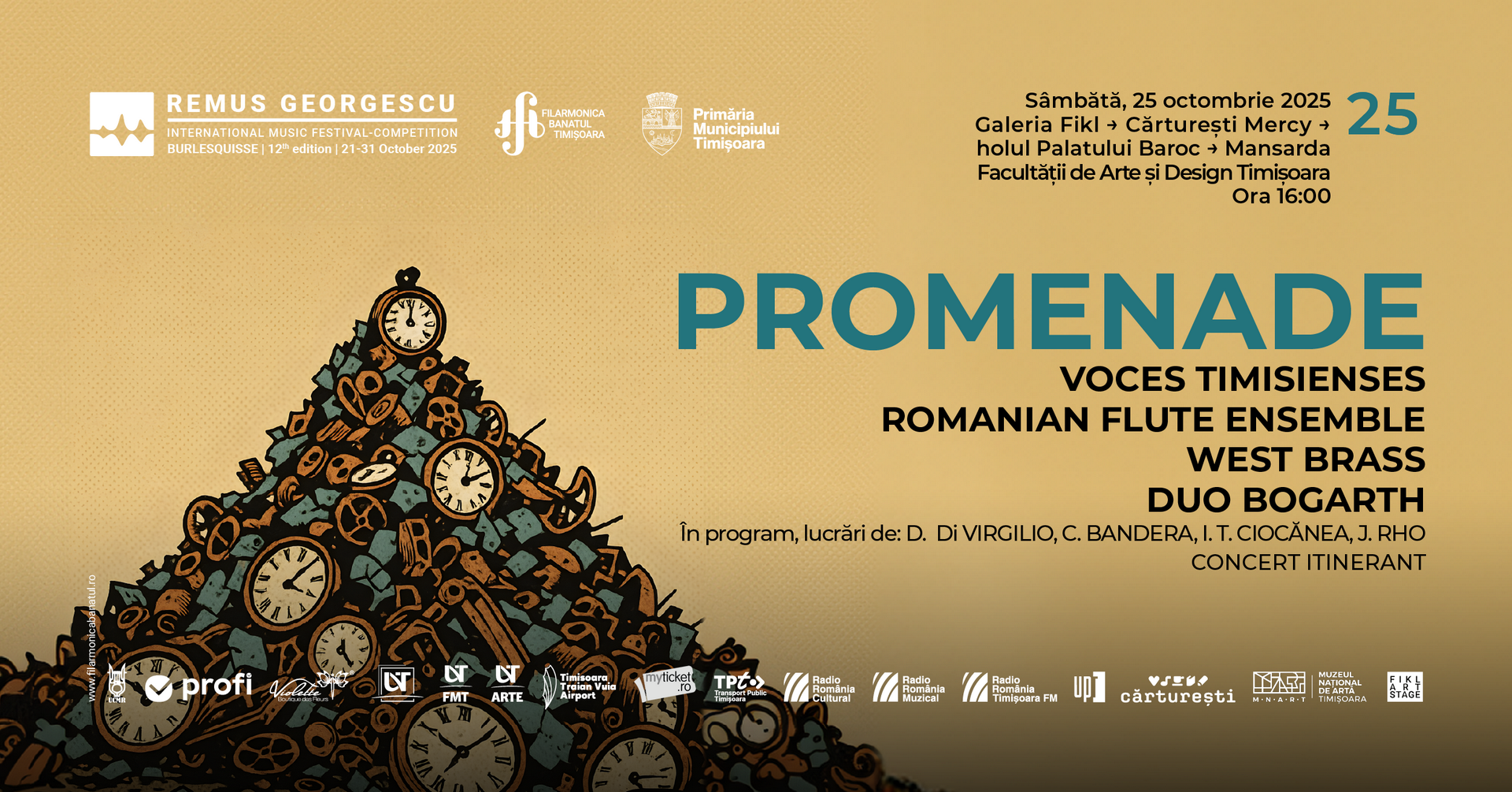 În cadrul celui de-al doilea eveniment ediției de anul acesta a Festivalului-Concurs Internațional „Remus Georgescu”, sâmbătă, 25 octombrie 2025, Filarmonica Banatul Timișoara aduce muzica contemporană în spațiile culturale ale orașului, într-un traseu muzical unic. Vor interpreta Voces Timisiensis, Romanian Flute Ensemble, West Brass și Duo BogArth.