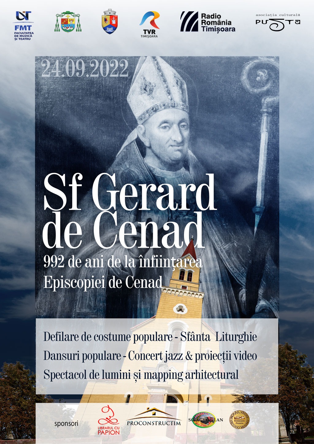 La Cenad va fi celebrat sâmbătă, 24 septembrie 2022, cel de-al 992 an de la înființarea Episcopiei de Cenad de către Sfântul Gerard. În comuna Cenad au conviețuit în armonie, sute de ani, alături de români, germani, maghiari, sârbi, bulgari și rromi. La împlinirea a aproape un mileniu de la înființarea Episcopiei de Cenad, evenimentul este menit să reunească pe toți cei care simt că aparțin acestei comunități.
