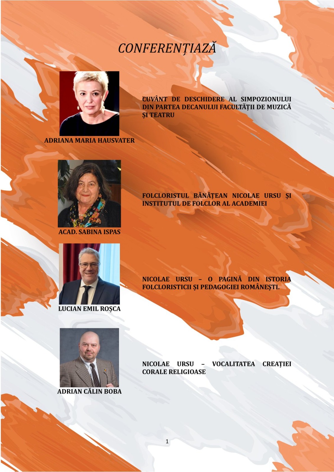 În cadrul simpozionului, academicianul Sabina Ispas va vorbi despre contribuția folcloristului bănățean Nicolae Ursu și despre Institutul de Folclor al Academiei, etnomuzicologul Lucian Emil Roșca va deschide sesiunile cu o analiză amplă intitulată „Nicolae Ursu – O pagină din istoria folcloristicii și pedagogiei românești”, în timp ce Adrian-Călin Boba va evidenția dimensiunea sacră a creației corale în comunicarea sa „Nicolae Ursu – vocalitatea creației corale religioase”.