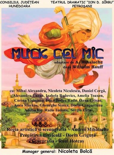 Pentru cei mici Teatrul Dramatic I.D. Sârbu din Petroșani prezintă duminică, 24 ianuarie, de la ora 12.00, piesa „Muc cel Mic” de Wilhelm Hauff, adaptare de Andrei Mihalache, cel care semnează şi scenografia spectacolului pentru copii.