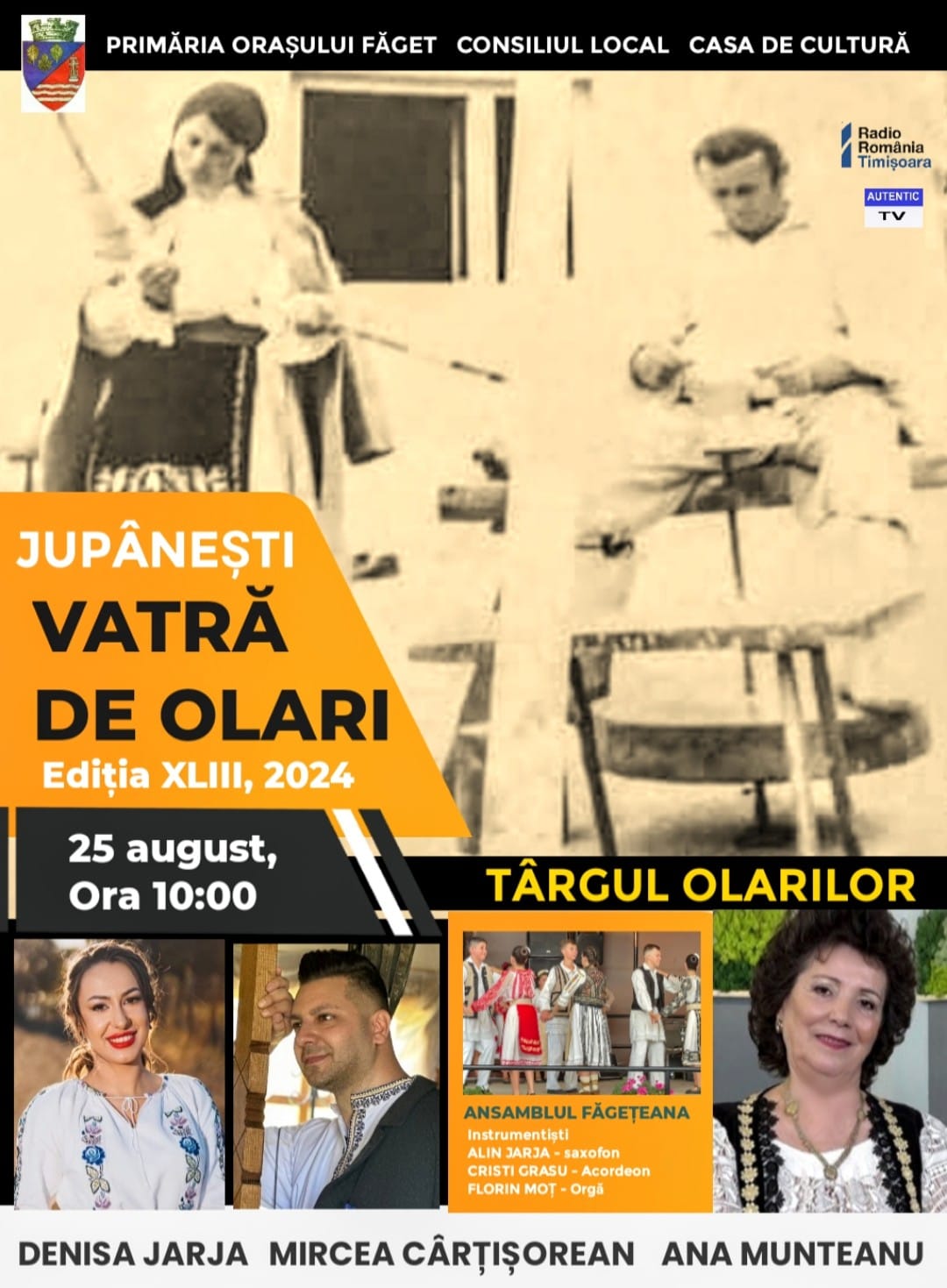 Tradiționalul Târg al olarilor de la Jupânești, sat ce aparține orașului Făget din județul Timiș, va avea loc duminică, 25 august 2024, începând cu ora 10.00.