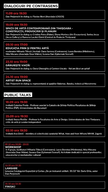 Expoziția „DAN PERJOVSCHI. ROMÂNIA — O retrospectivă 1985–2025” este un proiect produs de Asociația Culturală Contrasens, finanțat de Municipiul Timișoara prin Centrul de Proiecte și co-finanțat de AFCN.