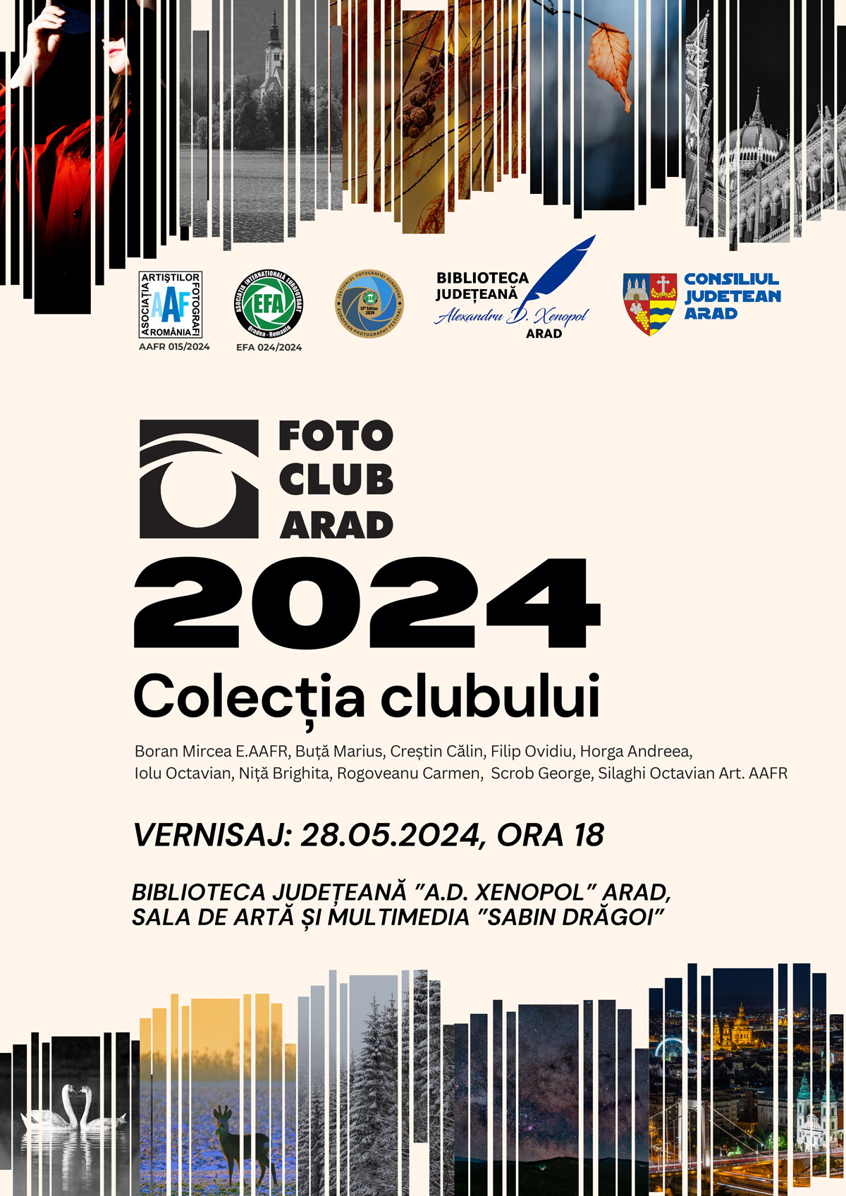 Biblioteca Județeană „Alexandru D. Xenopol” Arad, în parteneriat cu Asociația Foto Club Arad, vă invită marți, 28 mai 2024, începând cu ora 18:00, la vernisajul Salonului de Fotografie „Colecția Foto Club Arad 2024”.
