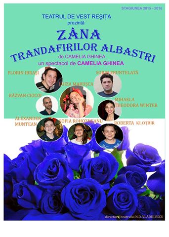 22 mai 2016 @ 11:00 – 12:00 – 22 mai, ora 11:00, Palatul Cultural Reşiţa Teatrul de Vest Reşiţa prezintă spectacolul pentru copii, „Zâna Trandafirilor Albaştri” după un text original de Camelia Ghinea. Un spectacol de Camelia Ghinea. În distribuţie: Florin Ibraşi, Sorin Fruntelată, Luisa Maruşca, Răzvan Ciocoi, Mihaela Teodora Winter, Alexander Muntean, Sofia Rohozneanu, Roberta Kloţbir.