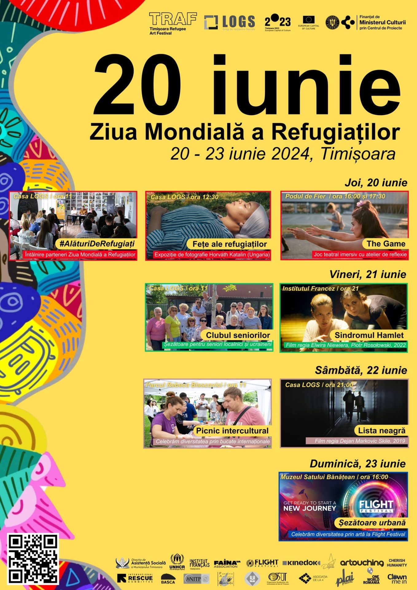 20 iunie, Ziua Mondială a Refugiaților va fi marcată pentru al optulea an în Timișoara. Astfel, în perioda 20 – 23 iunie 2024 vor avea loc șezători urbane, proiecții de film, expoziții, un picnic intercultural și o masă rotundă pentru autoritati și societatea civilă, organizate de Timișoara Refugee Art Festival.