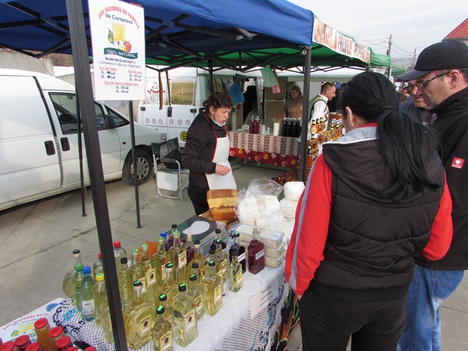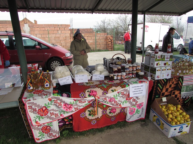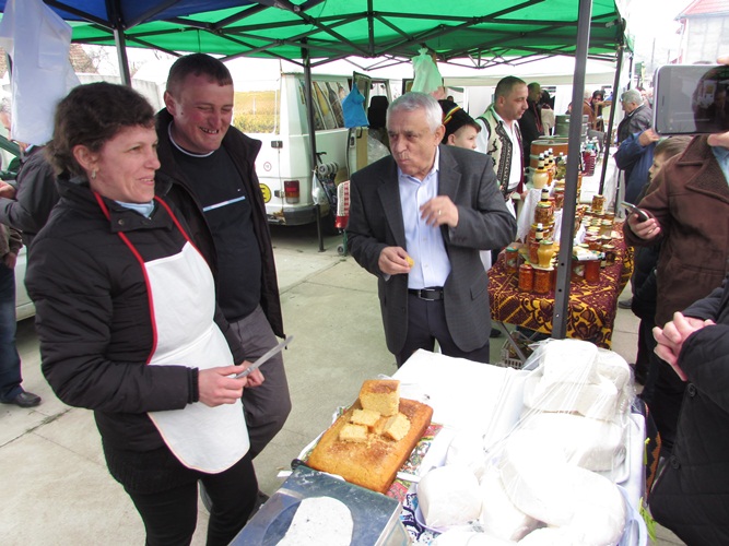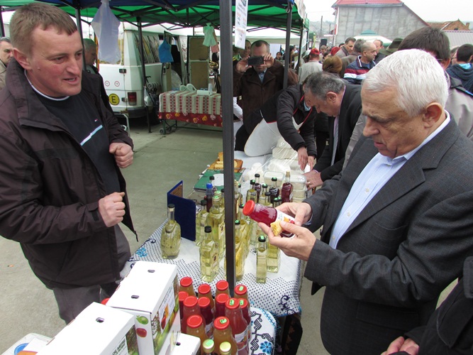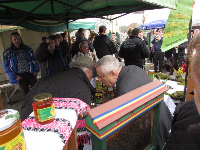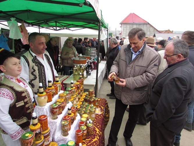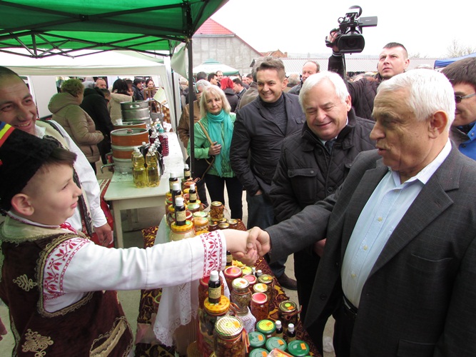 Ministrul Petre Daea a luat la rând standurile, vorbind cu expozanții. Nu au avut secrete, doar că uneori era greu să te faci auzit mai bine decât fanfara Societății culturale  „George Coșbuc” din Grebenaț-Serbia. Rămâne să decideți dumneavoastră dacă mălaiul tradițional merge mai bine cu un suc natural de mere și sfeclă roșie, sau cu o pălincă de pere.