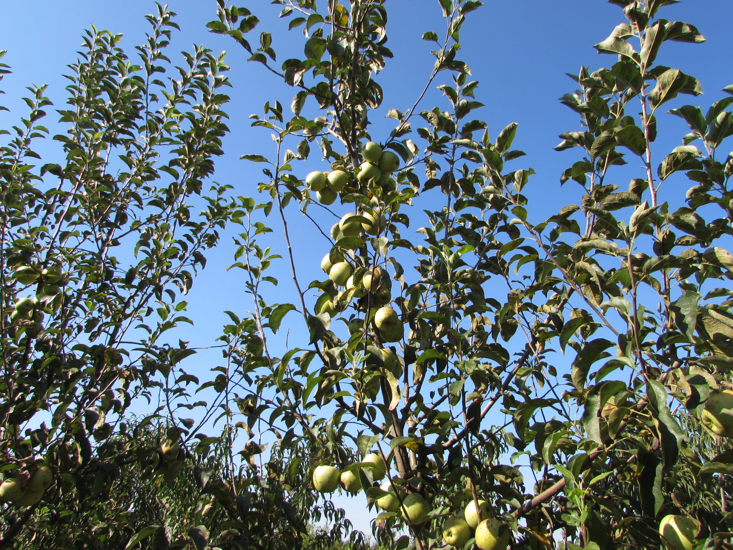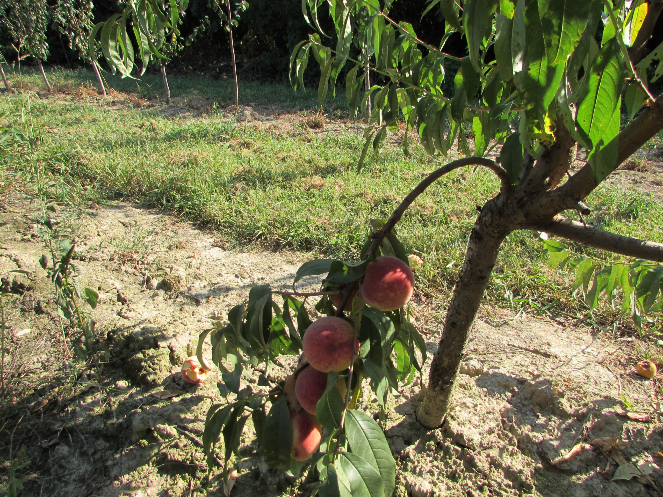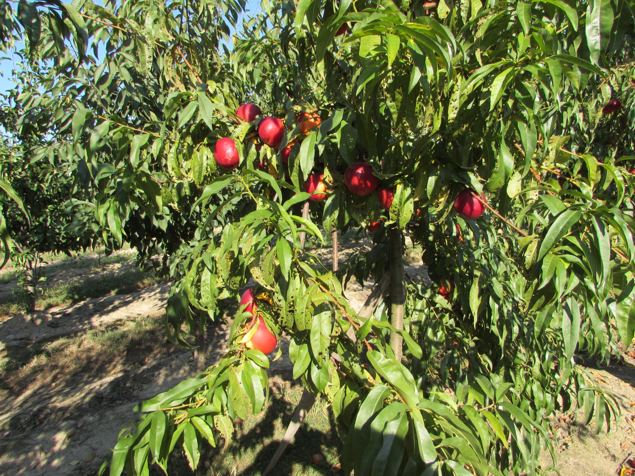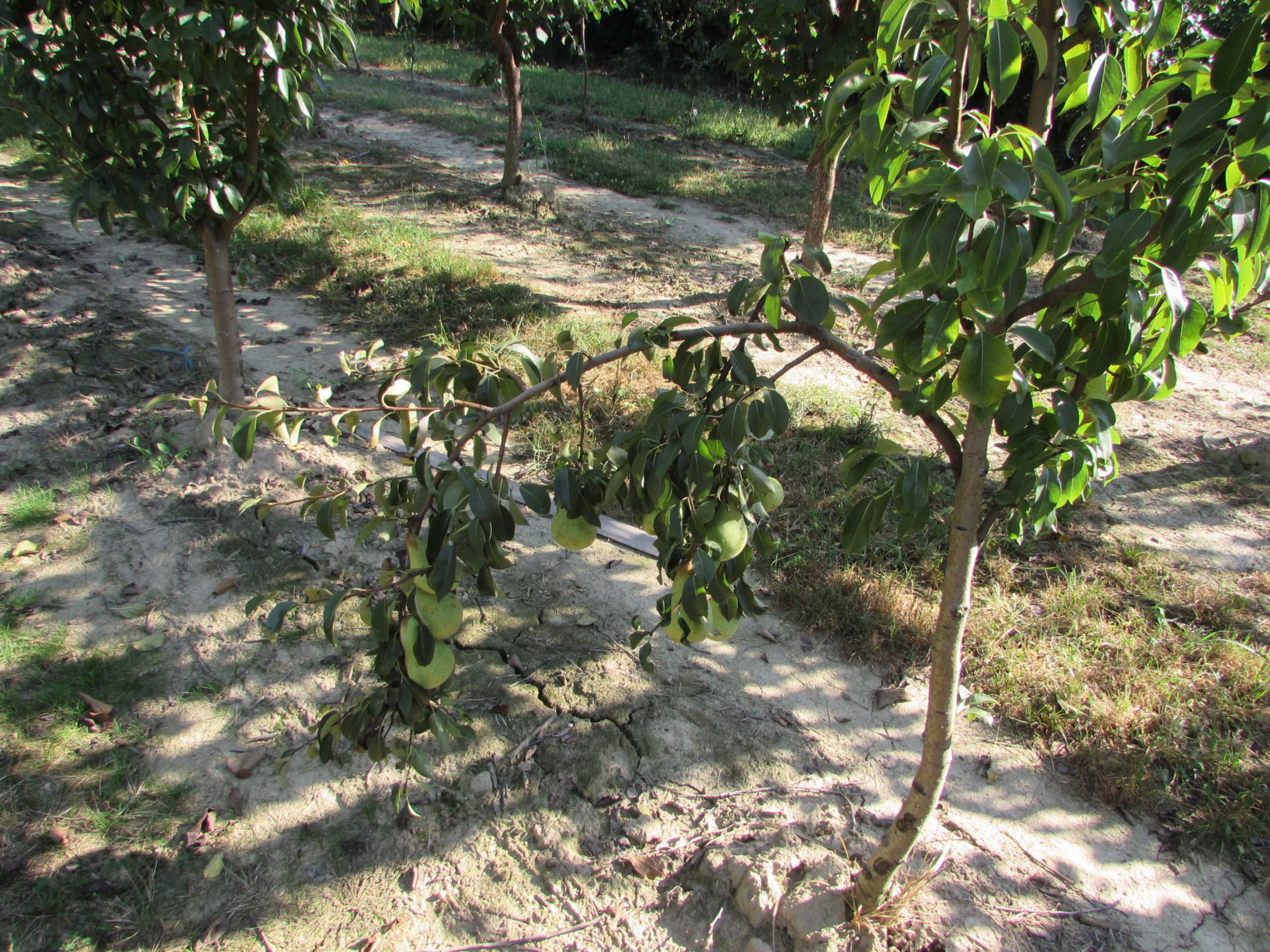 Crengile se pleacă spre pământ sub greutatea rodului bogat.