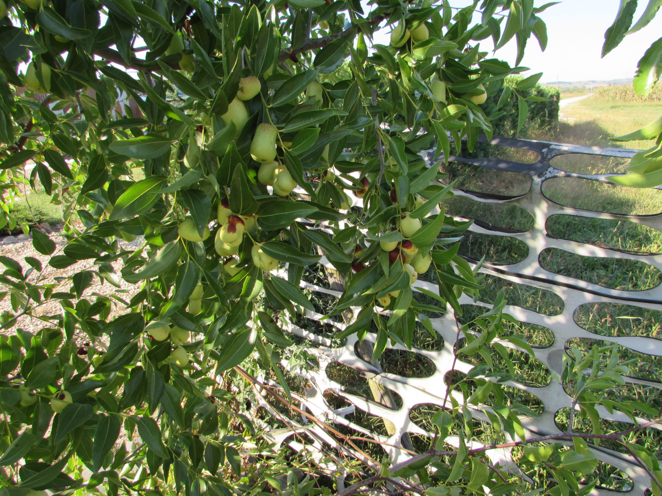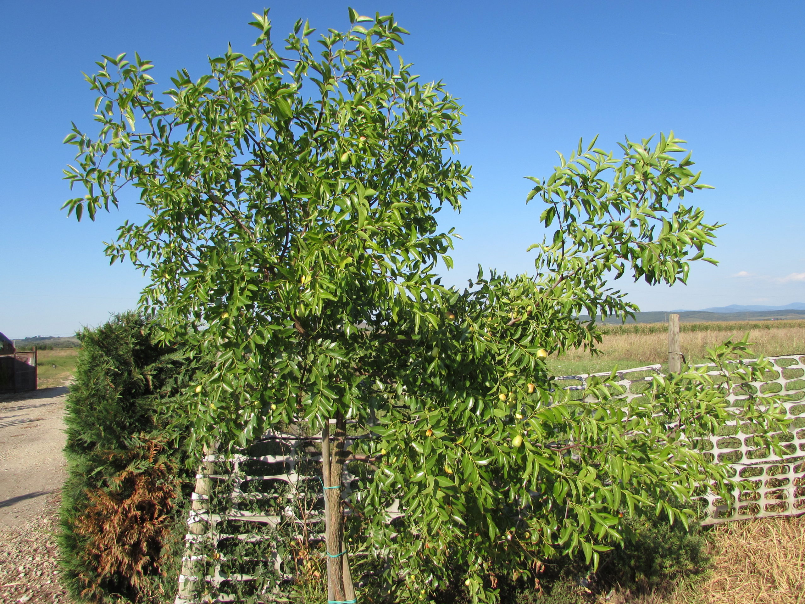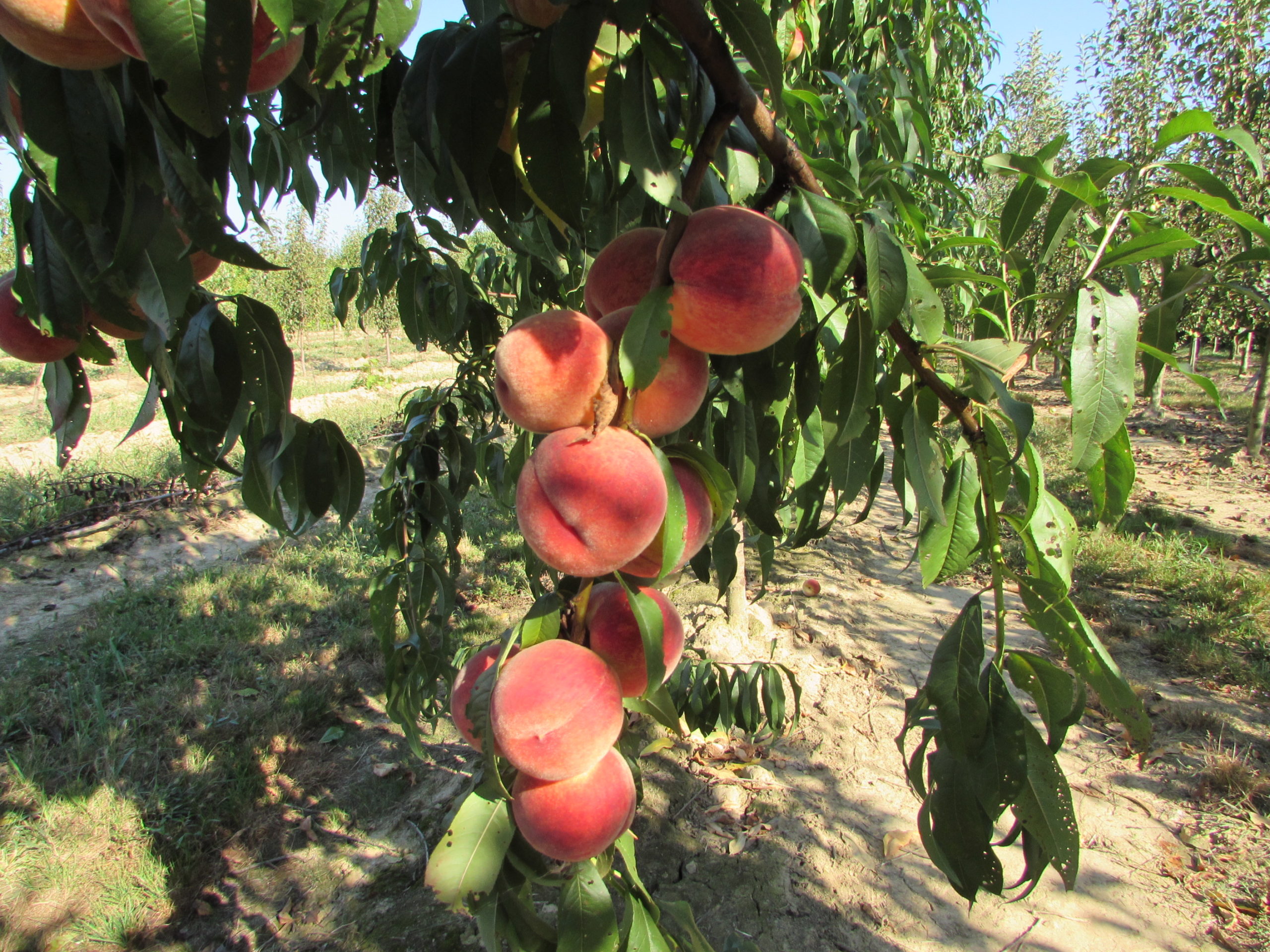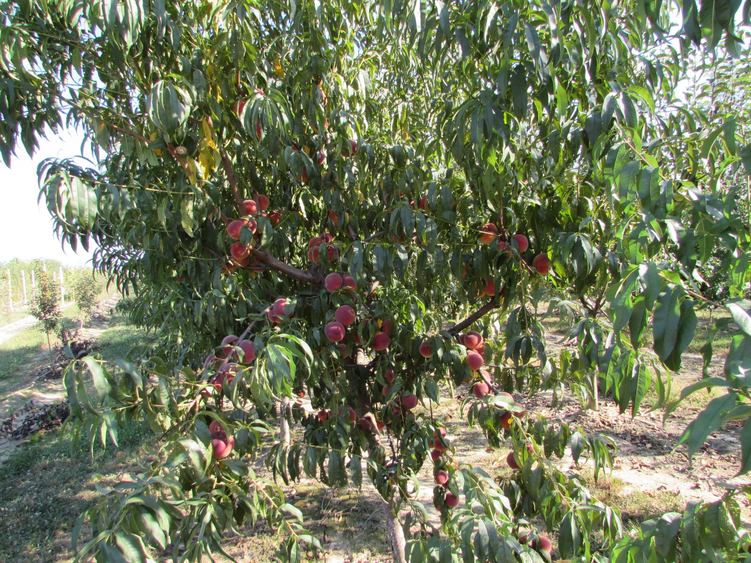 Crengile se pleacă spre pământ sub greutatea rodului bogat.