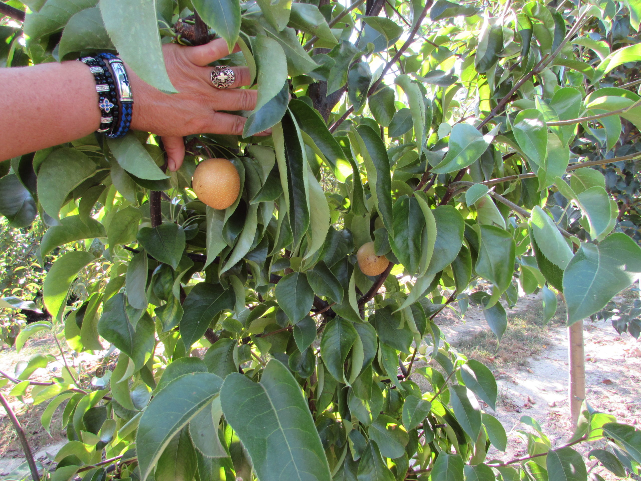 Mere, pere, prune bune și, nu alune, ci piersici, nectarine și ultimele nashi, toate se găsesc în livada cu pomi fructiferi a doamnei Lenuța Ungureanu.