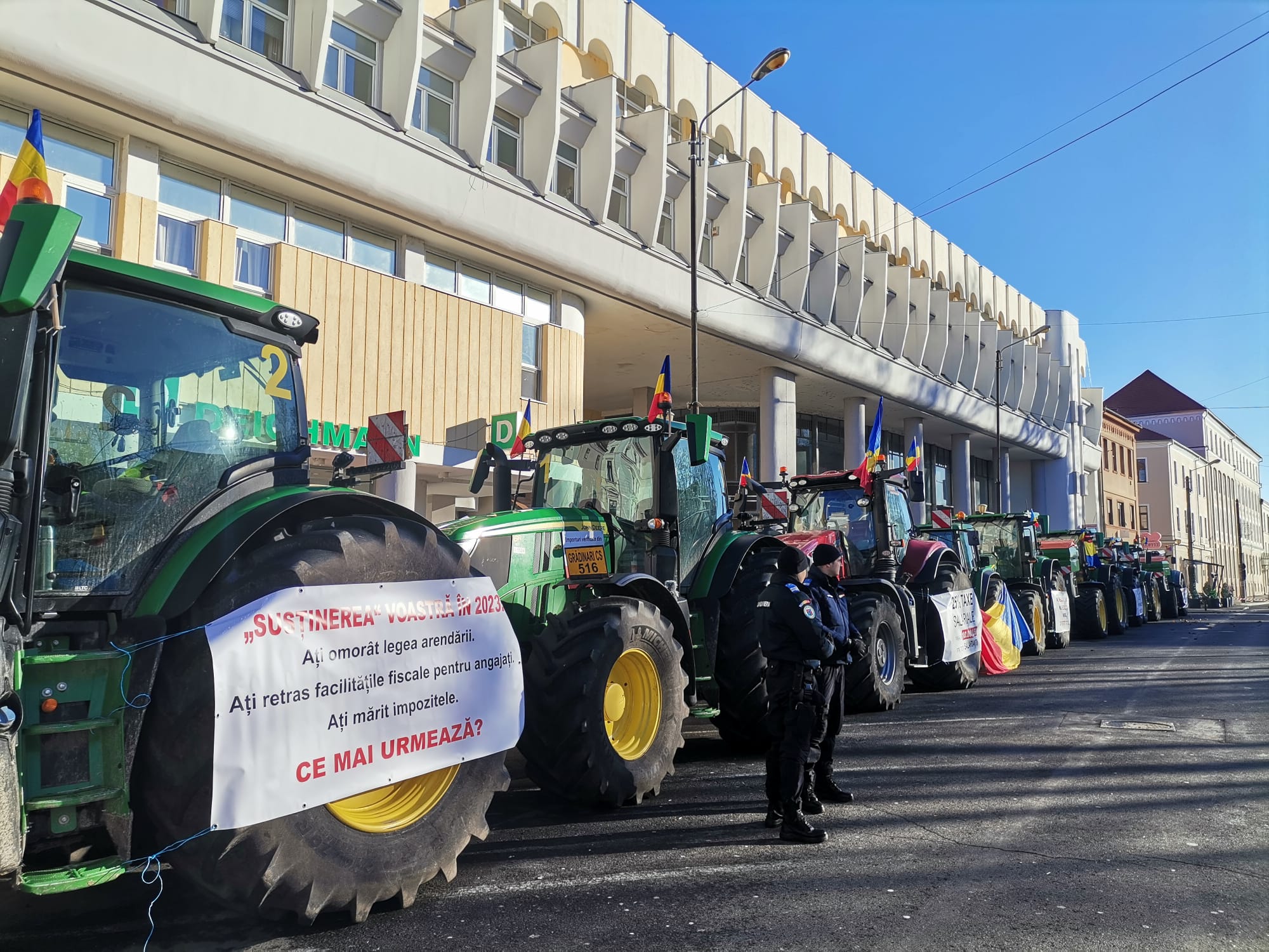 Fermierii, veniți încă de joi seara cu utilajele agricole în parcarea din Piața Huniade, se declară nemulțumiți de prețul mic al cerealelor și costurile ridicate de producție. Oamenii reclamă și nivelul scăzut al subvențiilor, comparativ cu vestul Europei. Protestul este autorizat până pe 24 ianuarie, însă, femierii amenință că vor mai rămâne în stradă, în cazul în care Guvernul și Ministerul Agriculturii nu vin cu soluții.