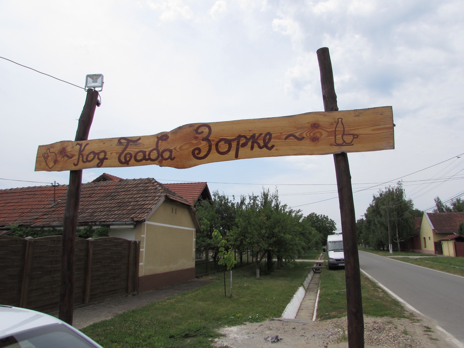După o viață petrecută la Timișoara, Sava Glisici s-a întors în Diniașul natal și a făcut din casa moștenită de la bunica soției un restaurant rustic. A expus lucruri găsite prin pod: vechi halbe de bere, un piglais( călcător cu jar), o pendulă, poze vechi, ce seamănă mai mult a desene, a făcut abajururi din nuiele împletite, și a pus la loc de cinste fotografia tatălui, celebrul acordeonist Giala, așa cum era cunoscut de iubitorii folclorului, pe numele său oficial Radivoi Popov. Și pentru că bunica nu trebuie uitată, popasul a primit numele „La baba Zorka”.