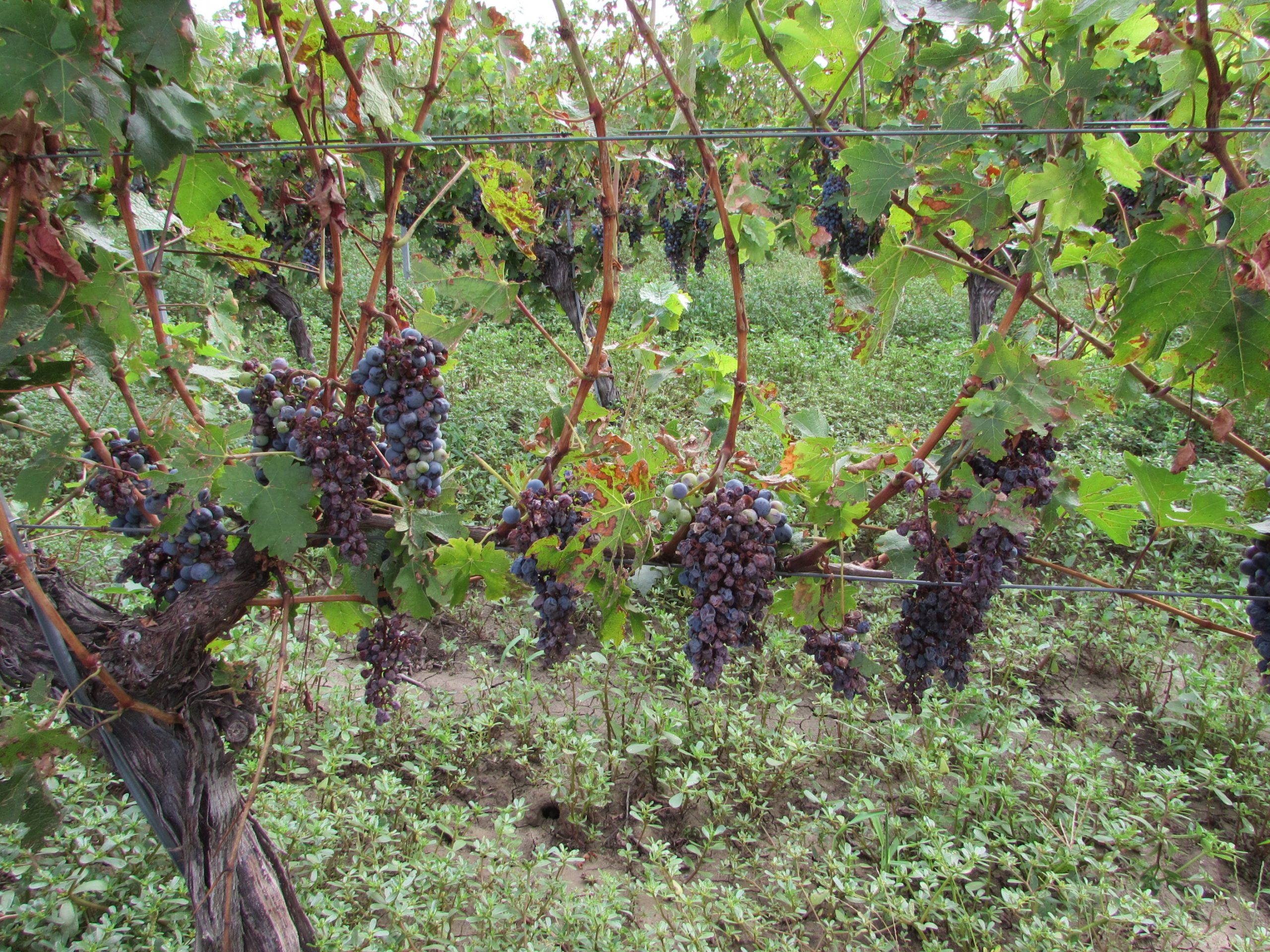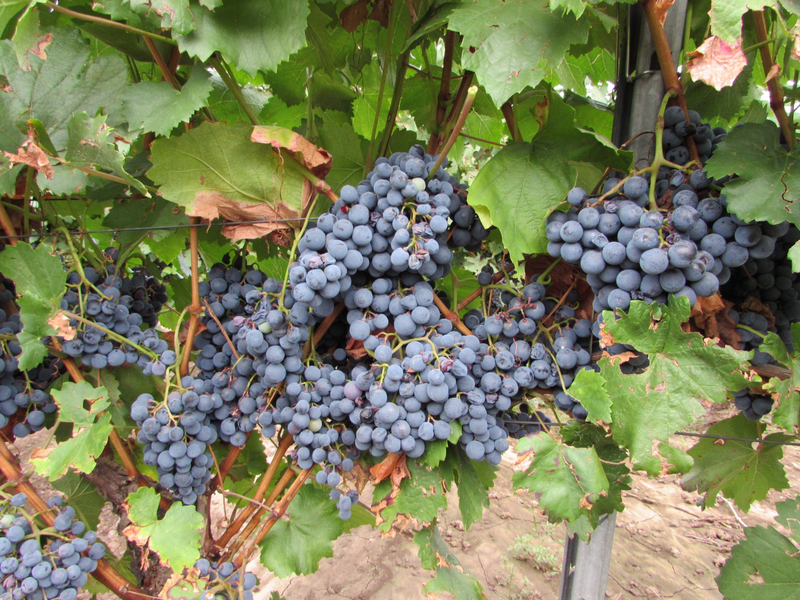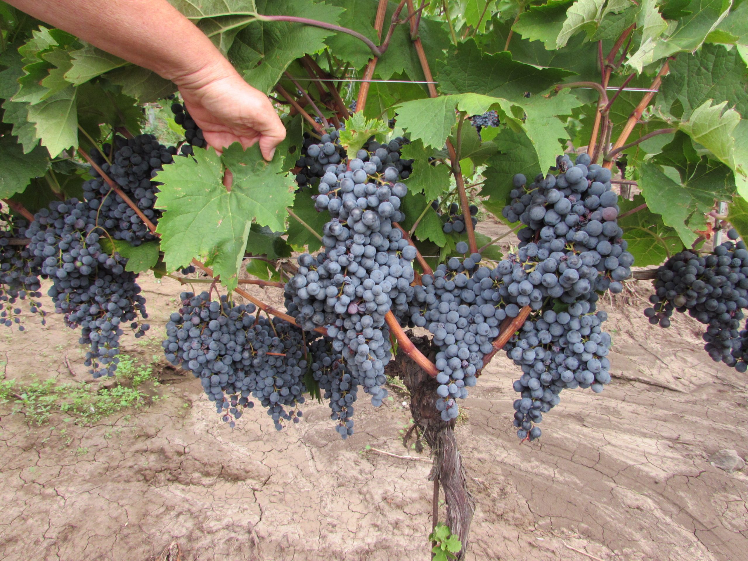 Directorul general Gheorghe Iova este mândru de calitatea strugurilor din vie, dar și de calitatea frunzelor, pentru că ele produc hrana pentru întreaga plantă. Aceștia sunt struguri pentru vinuri de top, pentru că după cum vedeți între rânduri sunt ciorchinii tăiați de pe butuc, cam jumătate dintre cei existenți, pentru a mări calitatea celor rămași. Renunți la cantitate pentru un spor substanțial de calitate.