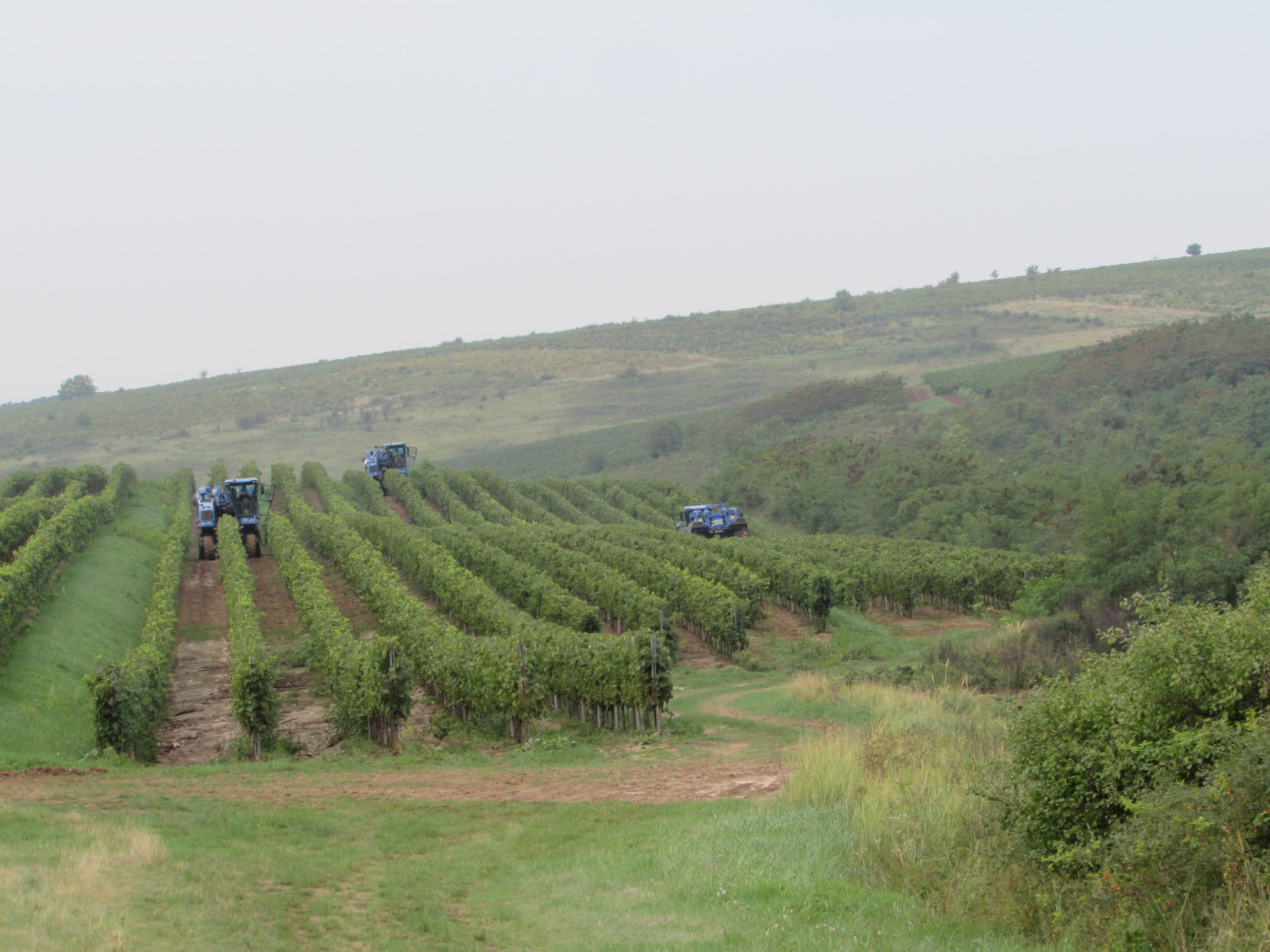 Se apropie ora 10 dimineața, deci se apropie finalul încă unei zile de muncă pentru combinele de recoltat struguri. Și pentru combine și pentru mecanizatori urmează o binemeritată odihnă, după 12 ore de activitate. Ultimele buncăre sunt golite în remorci și iau drumul complexului de vinificație, iar rândul de lângă taluz își așteaptă culegătorii, pentru că pe el combina nu poate intra.