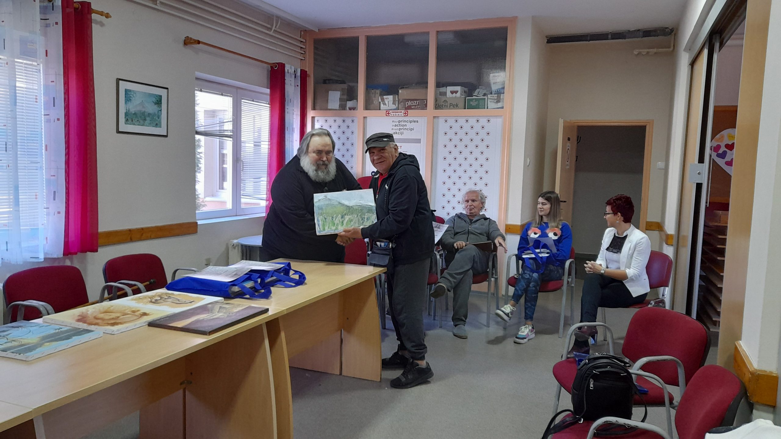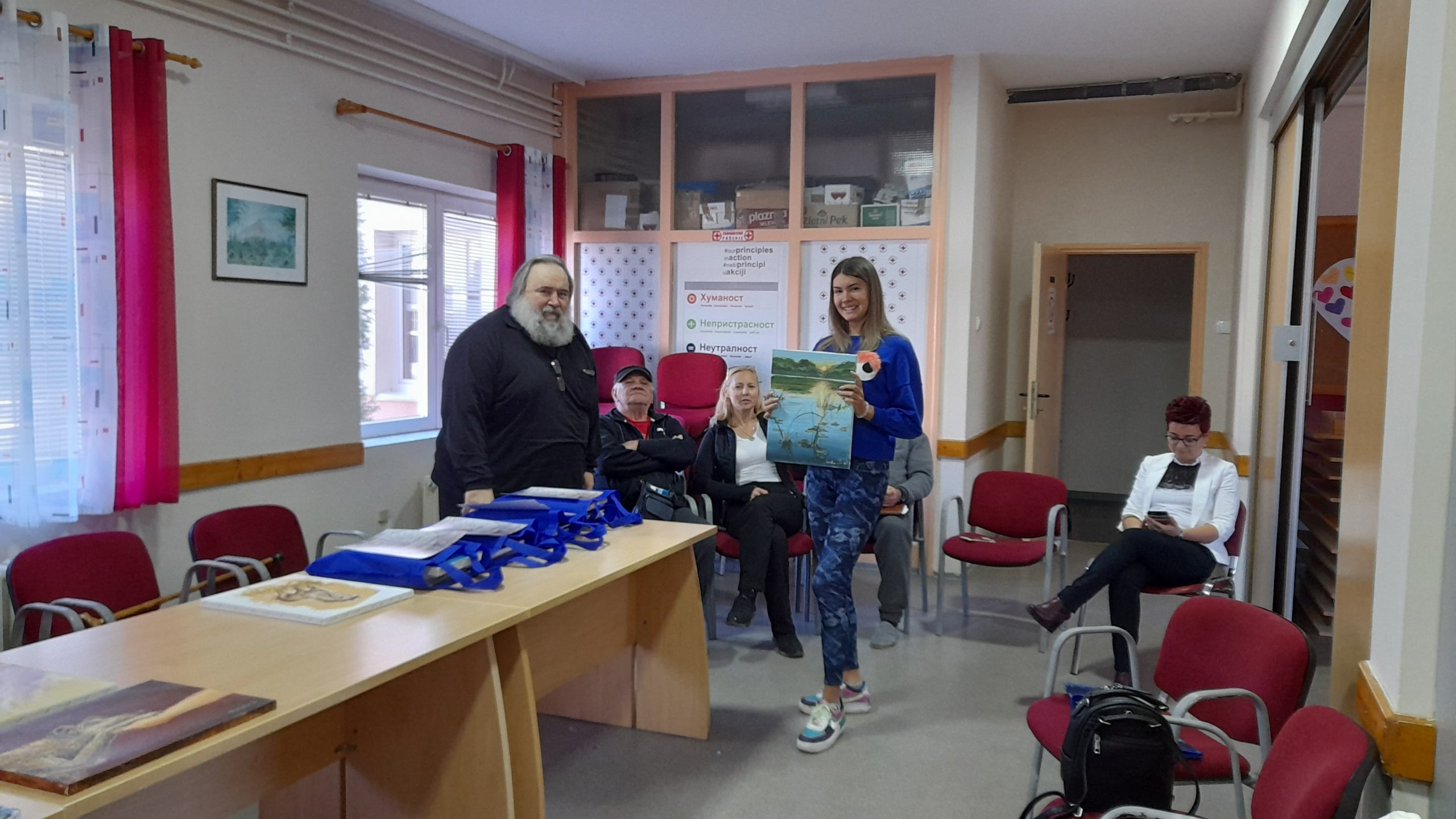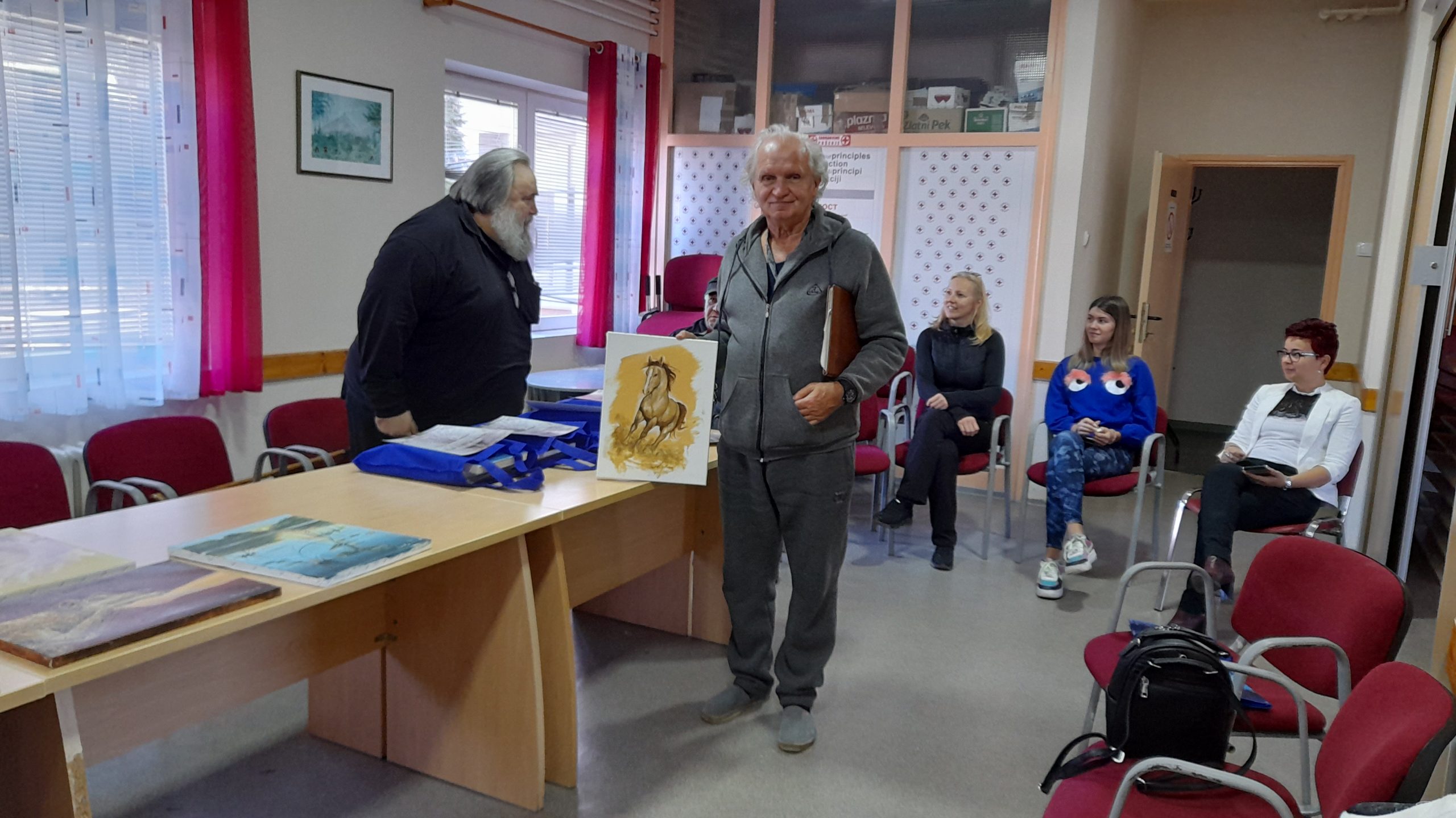 Pictorii s-au întrecut în lucrări, impulsionați și de expoziția elevilor din anii III și IV ai unui liceu din Vârșeț. Lucian Marina primește operele artiștilor, prima fiind cea de la Daniela Barbulov Popov, fotoreporterul nostru voluntar.