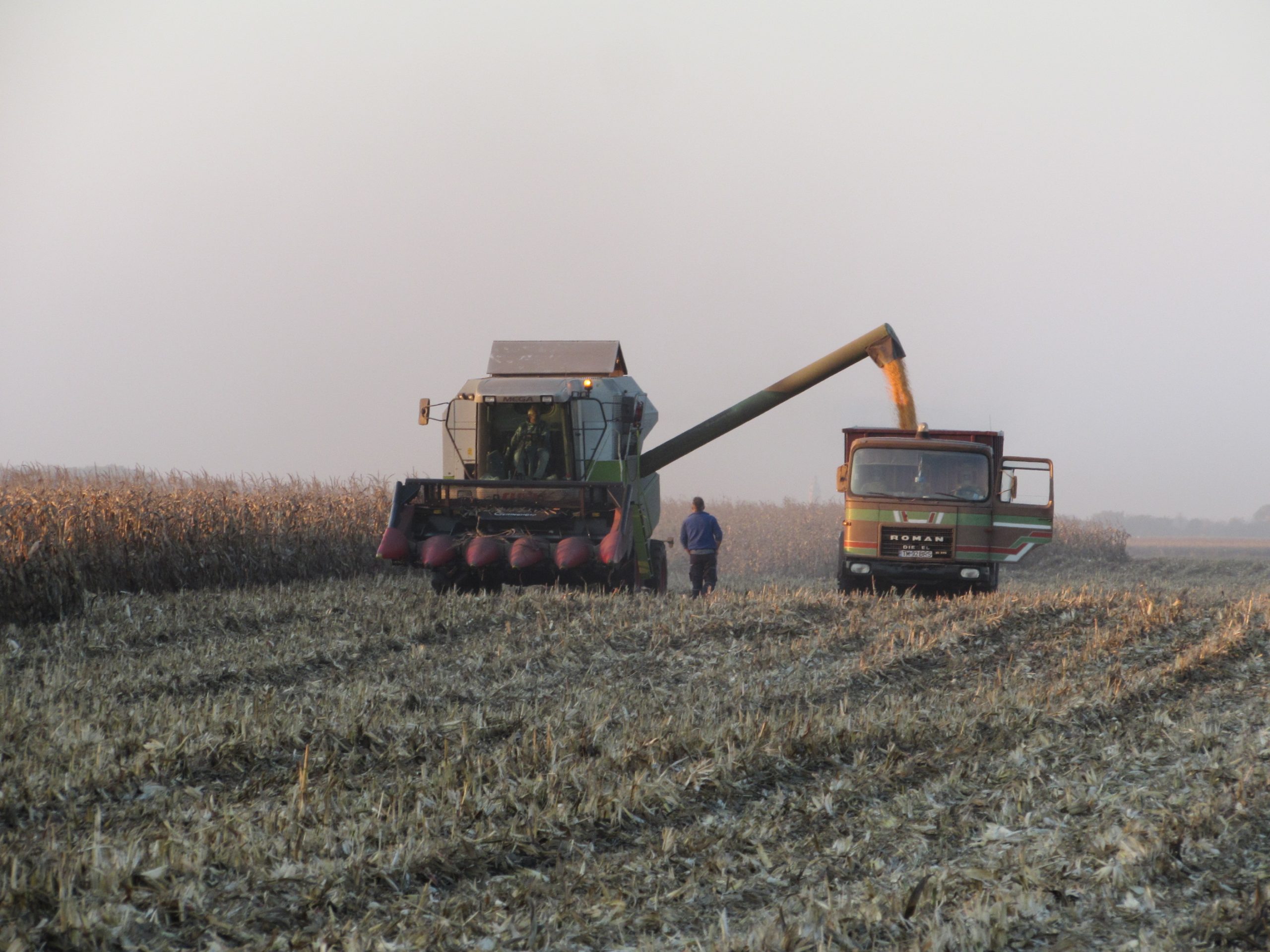 Cea mai mare parte a recoltei este deja în hambare, dar pe câmp porumbul se adună în ritm susținut, sub supravegherea specialistului Constantin Buzatu.