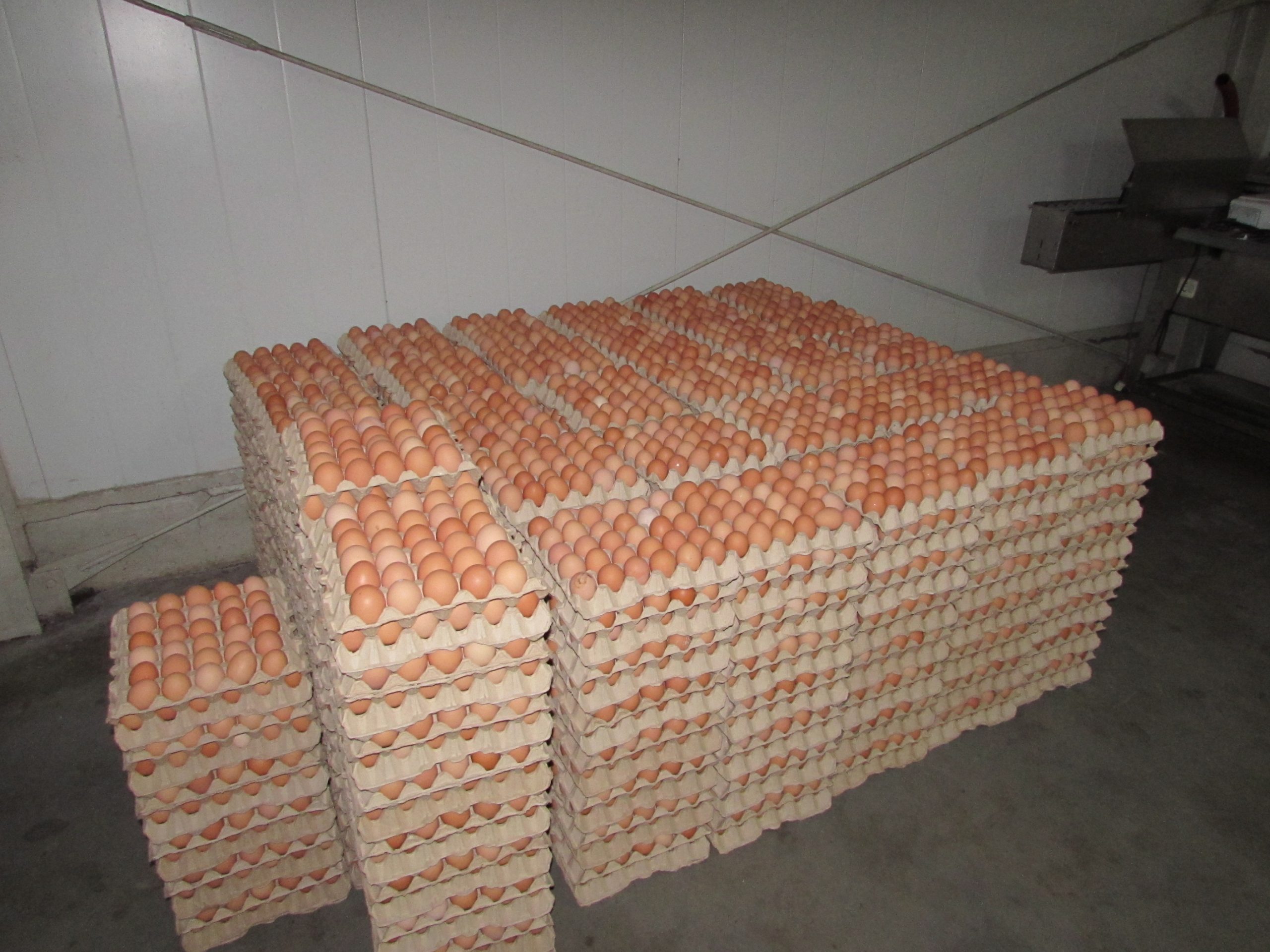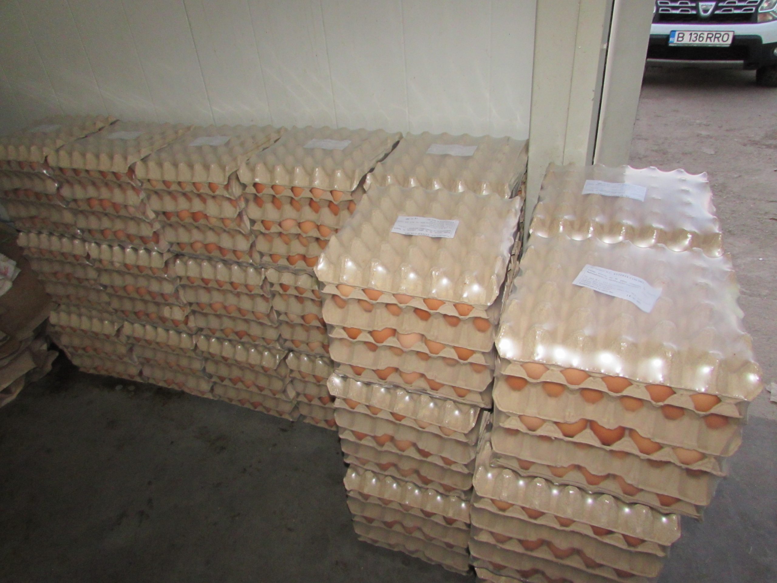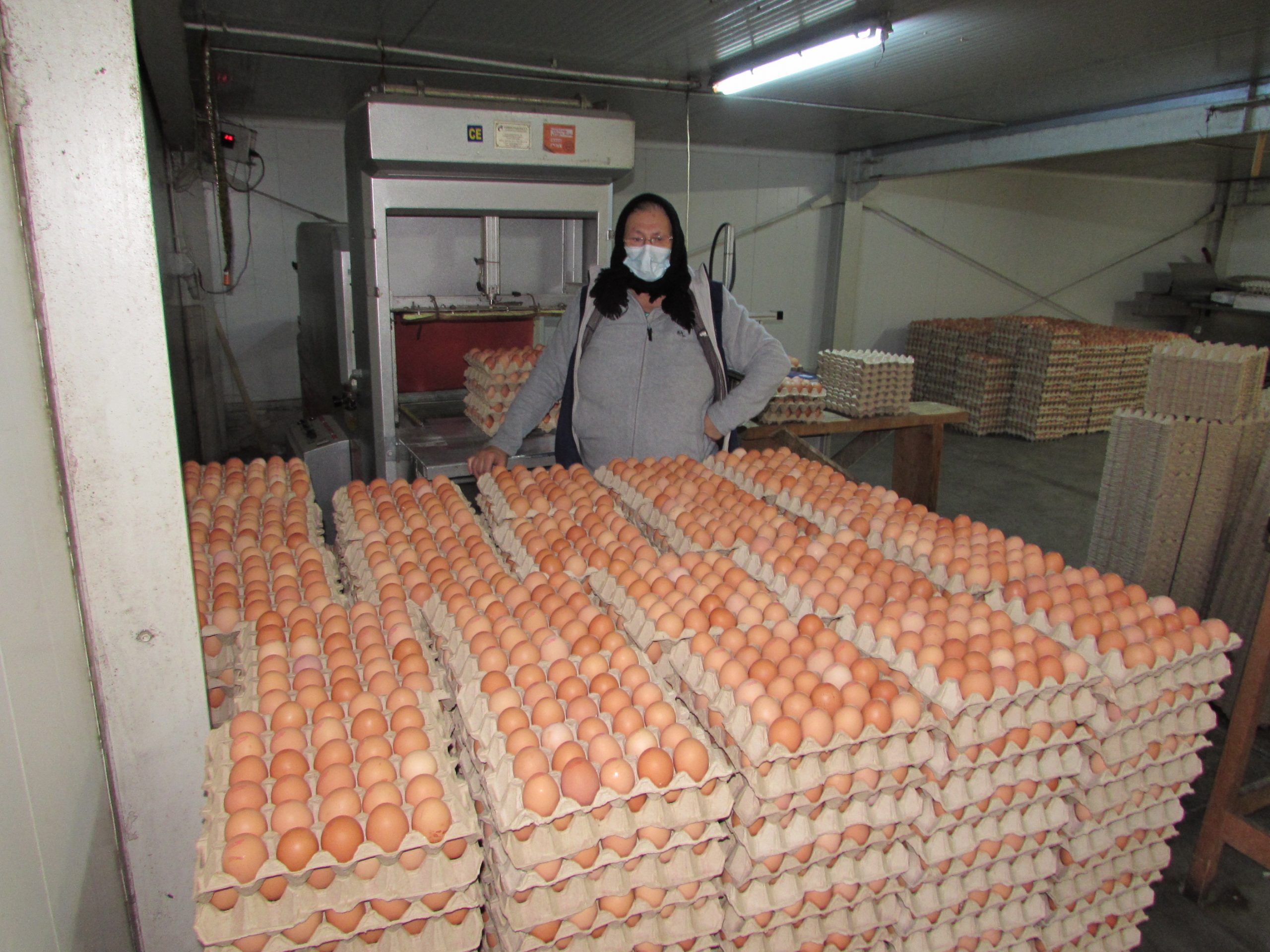 În ferma de găini ouătoare, atât timp cât au lumină, hrană și temperatură corectă, păsările sunt în activitate. Ouăle ajung în cofraje, acestea se stochează, apoi se înfoliază și sunt gata de expediere.