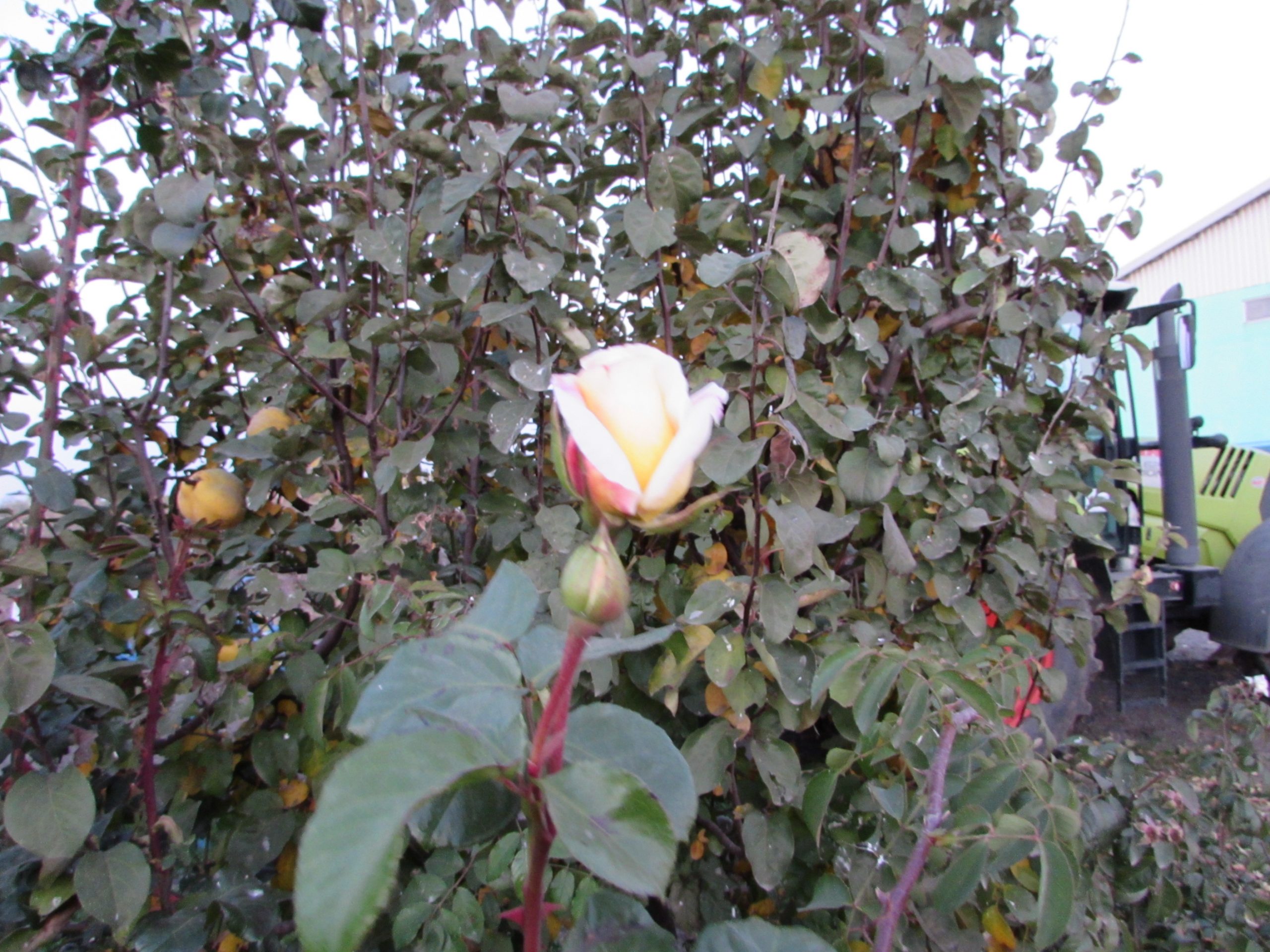 Oricând e bine să găsim un moment pentru bucuria ochilor și a sufletului. În curtea fermei sunt câțiva gutui încărcați de rod și câteva tufe de trandafiri cu ultimele tresăriri de frumusețe ale anului.