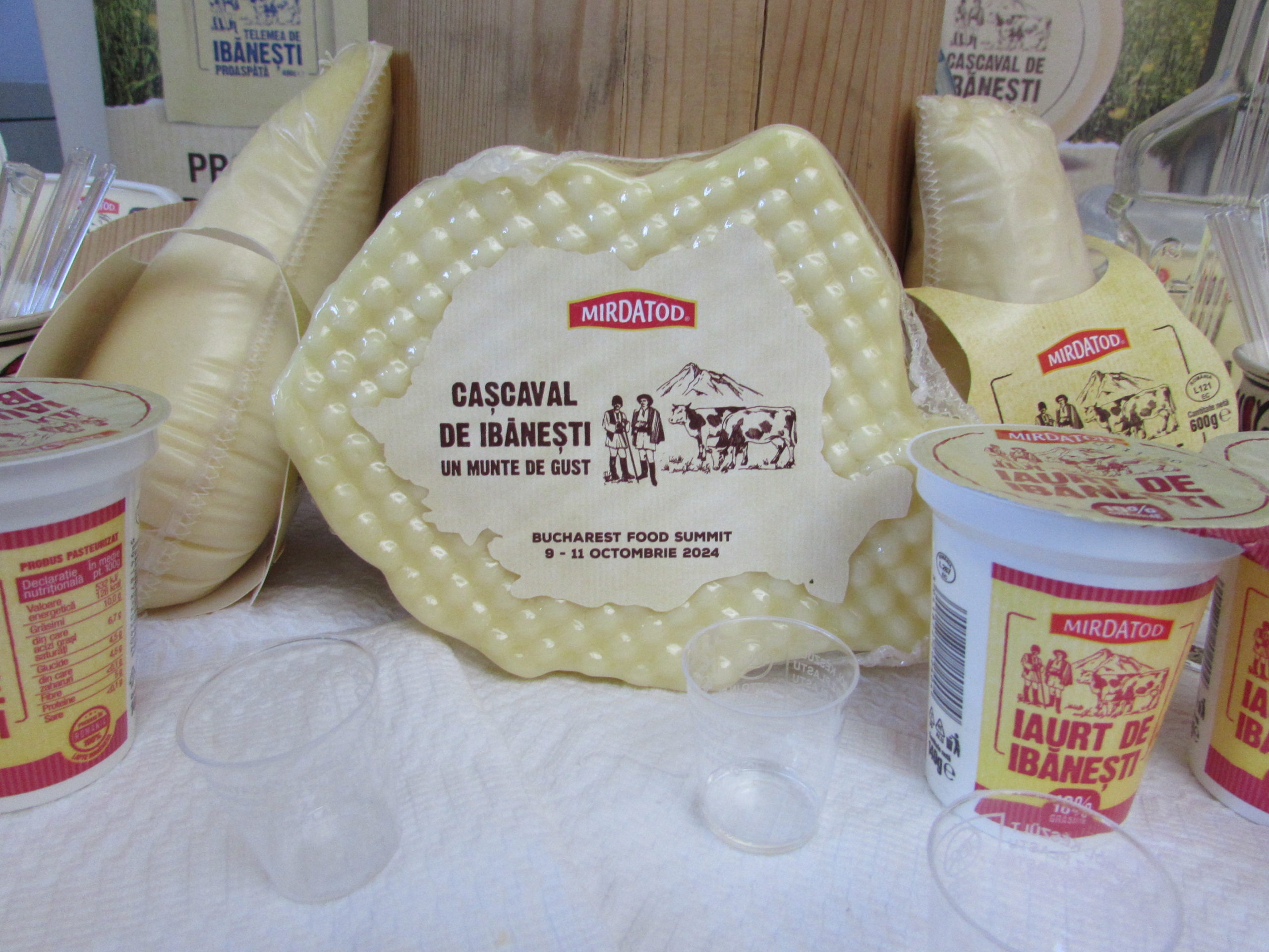 O prezenţă constantă la Bucarest Food Summit, cei de la Mirdatod Ibăneşti, cu lactate de toate felurile, nu vă lăsaţi înşelaţi, bucăţile galben-portocalii sunt caşcaval afumat, nu slănină şi care, aşa cum spunea sufletul acestei afaceri, David Todoran, vor continua să producă celebra lor telemea pentru că izvorul de la Orşova, Orşova de Mureş, nu de la noi din zonă, va mai furniza saramură mulţi ani de acum înainte. Caşcavalul având forma României, probabil, va apărea în curând pe piaţă.