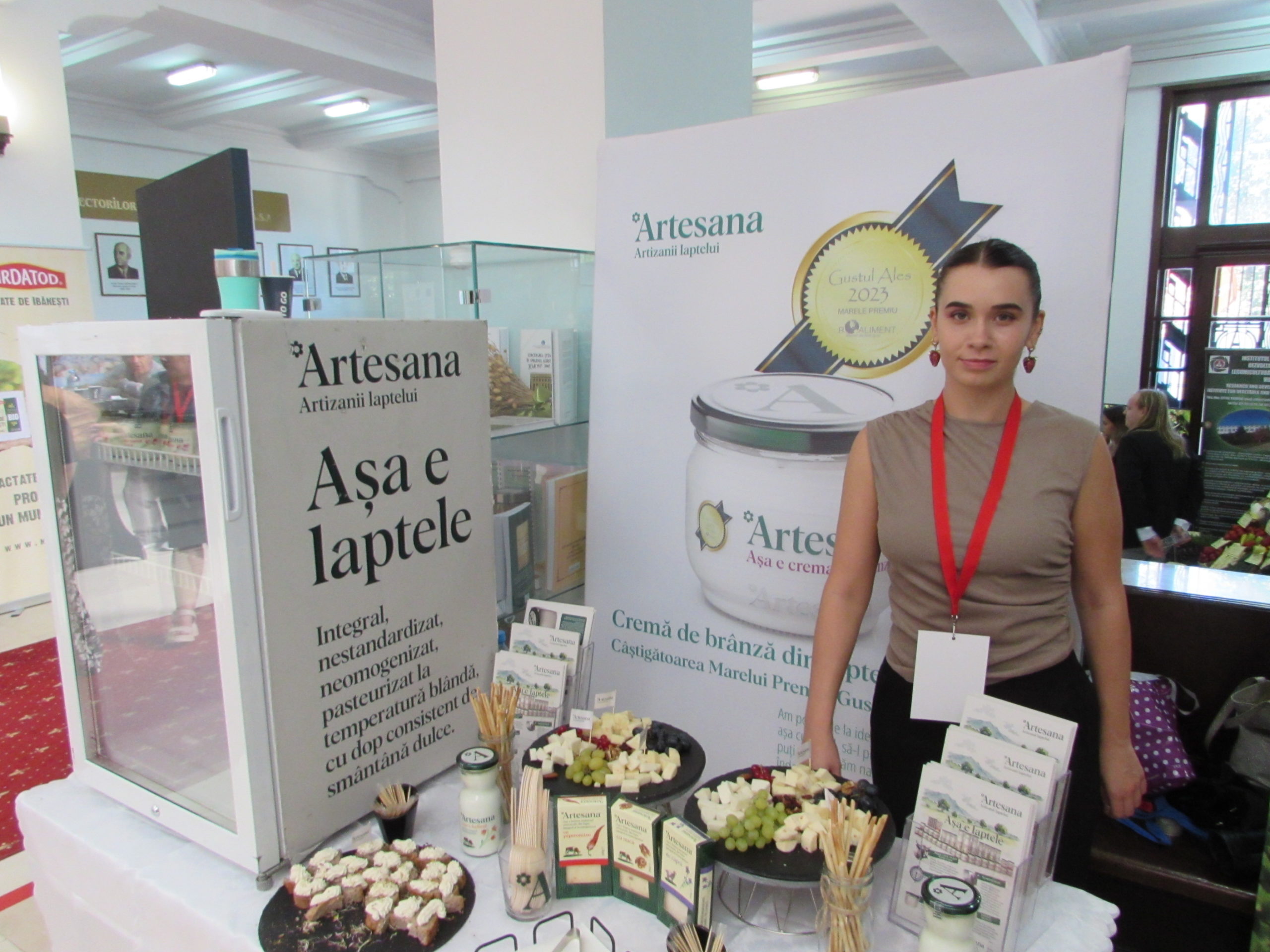 Din judeţul Galaţi, de la Tecuci, au venit cei de la Artesana. Gama variată de produse lactate, cu o atenţie deosebită pe calitate, pornind de la folosirea ambalajelor de sticlă în această epocă a plasticului, indică foarte clar o alegere selectivă a publicului ţintă.