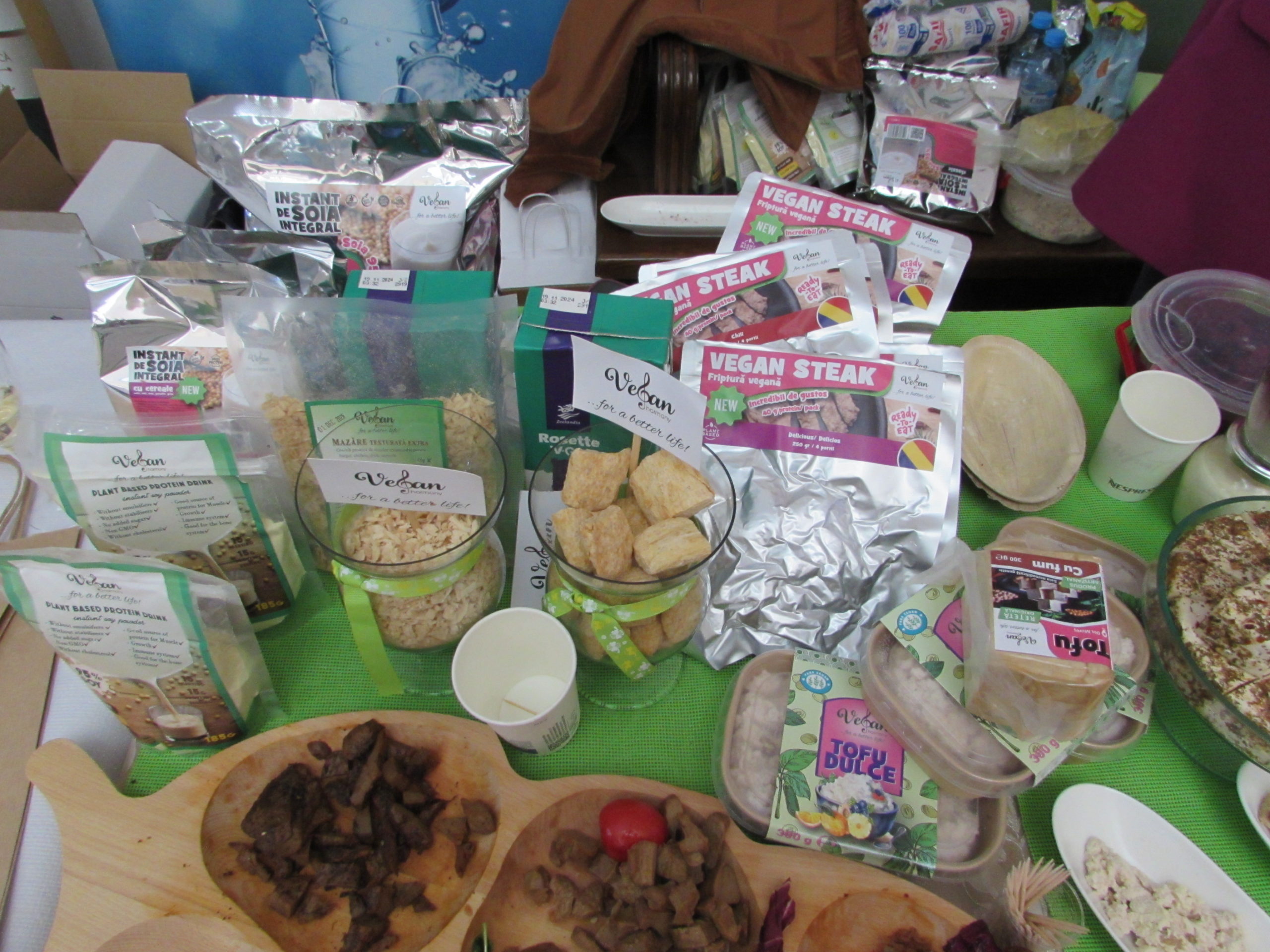Vine postul! Pentru cei interesaţi, o soluţie pot fi produsele celor de la Vegan harmony. Incredibil câte se pot face pornind de la micul bob de soia. Pare carne, dar nu e carne, pare brânză, dar nu e brânză, şi aşa mai departe. O masă completă, de la aperitiv la desert, doar cu produse pe bază de soia. O alternativă şi pentru cei care au tot felul de intoleranţe.