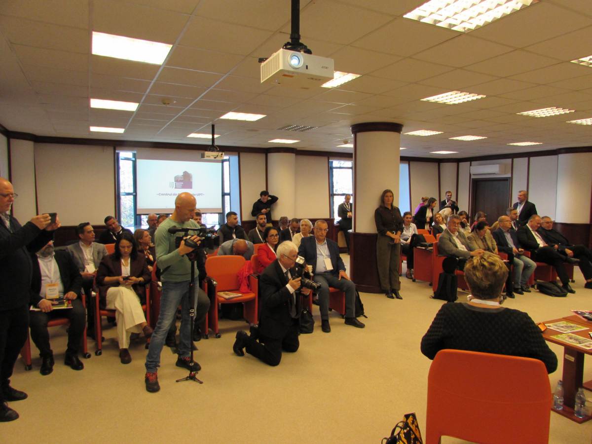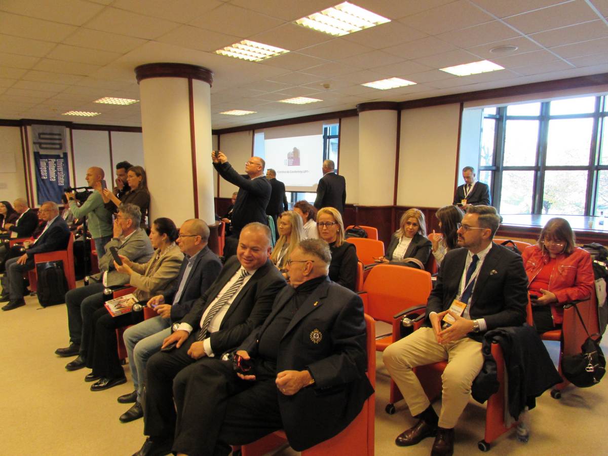 La Universitatea Politehnică din Timişoara tematica a fost adaptată: drone, inteligenţă artificială, soluţii tehnice pentru viitorul agriculturii. Vorbitori pe măsură, de la stânga la dreapta: Adrian Chesnoiu, fost ministru al agriculturii, un invitat din Australia, Varujan Pambuccian, parlamentar, Florin Drăgan, rector UPT, Cornelia-Elena Micicoi, prefect Timiş şi colega noastră Lia Lucia Epure, conducătoarea publicaţiei Ziua de Vest, iar Constantin Duma stă în genunchi din motive profesionale. Nici nu se roagă, nici nu se închină.
