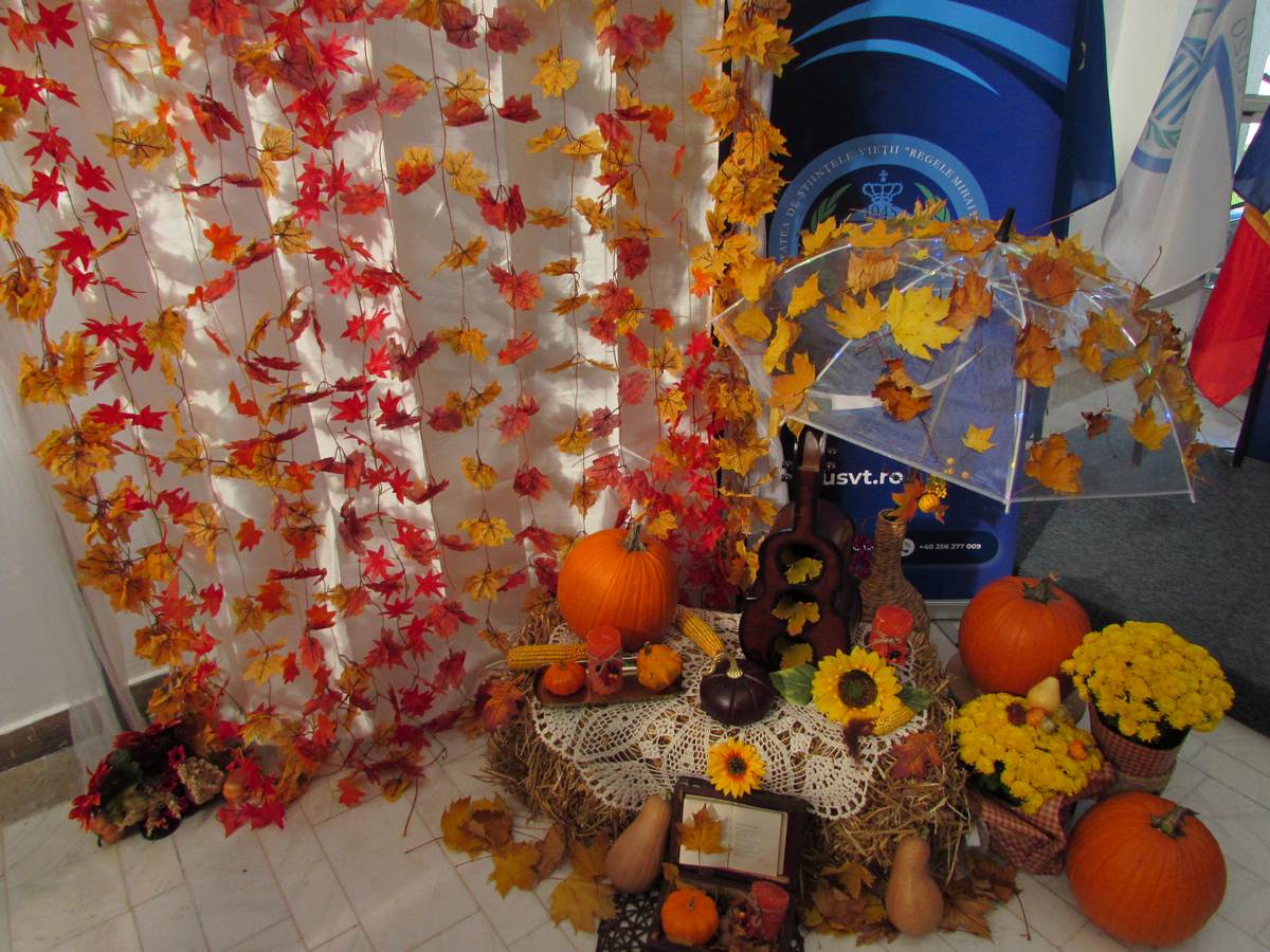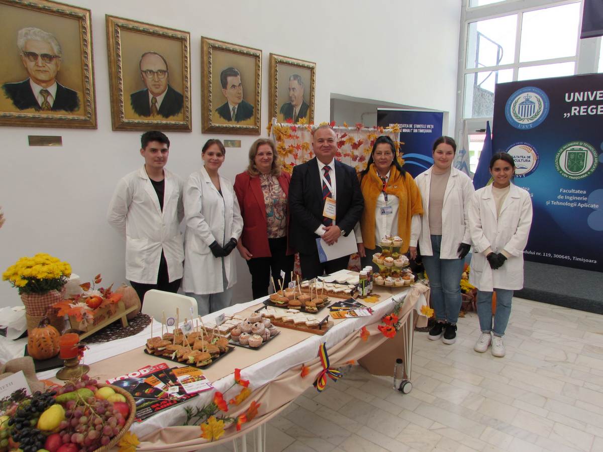 La standul gazdelor – USVT, Cosmin Alin Popescu, rector, şi Ileana Cocan, prodecan, au de ce să fie mândri de realizările echipei. Tot felul de produse şi frumoase, şi arătoase şi cu gust. Iar aranjamentul de toamnă trebuie să recunoaşteţi că e foarte inspirat.