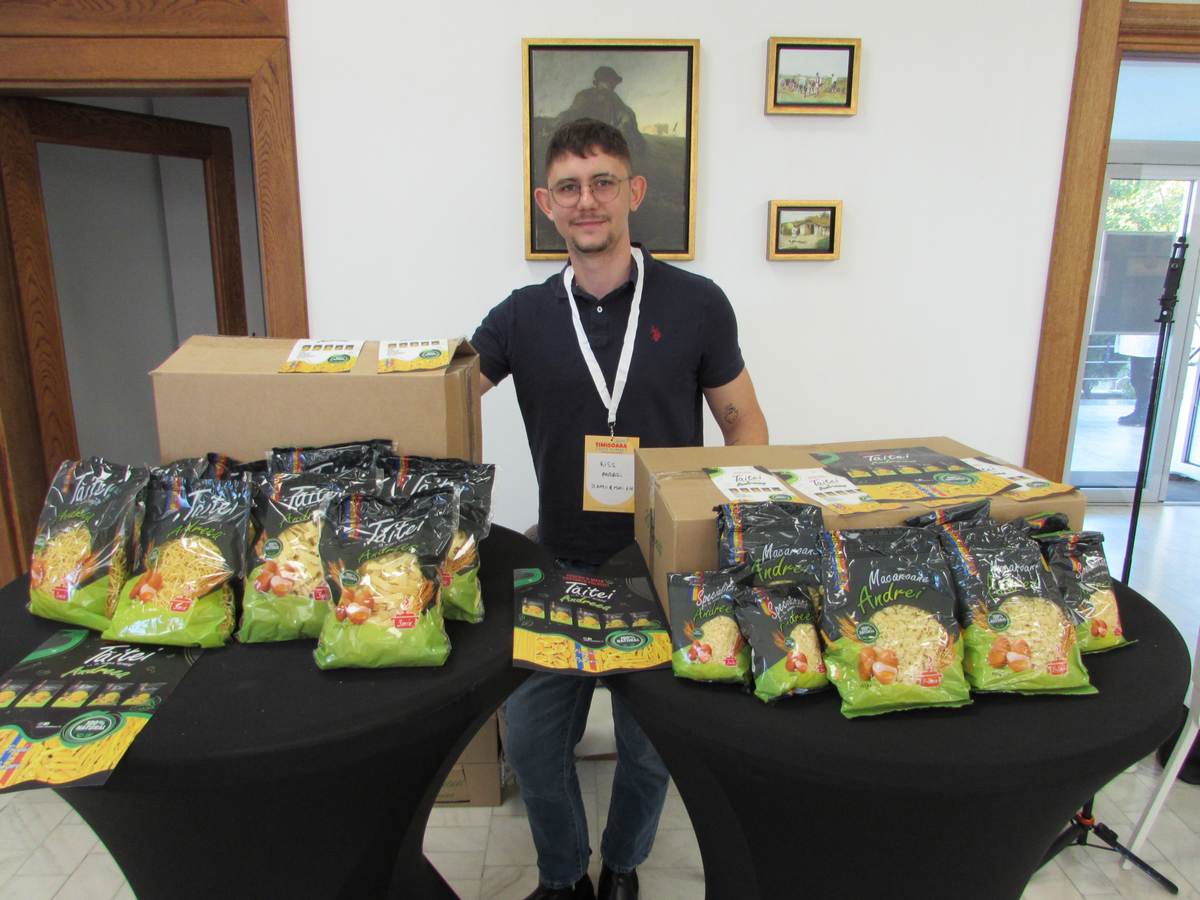 De la vest la sud, de la Biled la Deta. Pentru că părinţii tânărului din imagine, Andrei Kiss, cu mai bine de 10 ani în urmă, când se aflau la muncă în străinătate, au fost nemulţumiţi de ce au primit din ţară să pună în supă, au hotărât să se întoarcă acasă şi să producă ei paste făinoase. Aşa au apărut tăiţeii Andreea. Şi de atunci se tot dezvoltă.