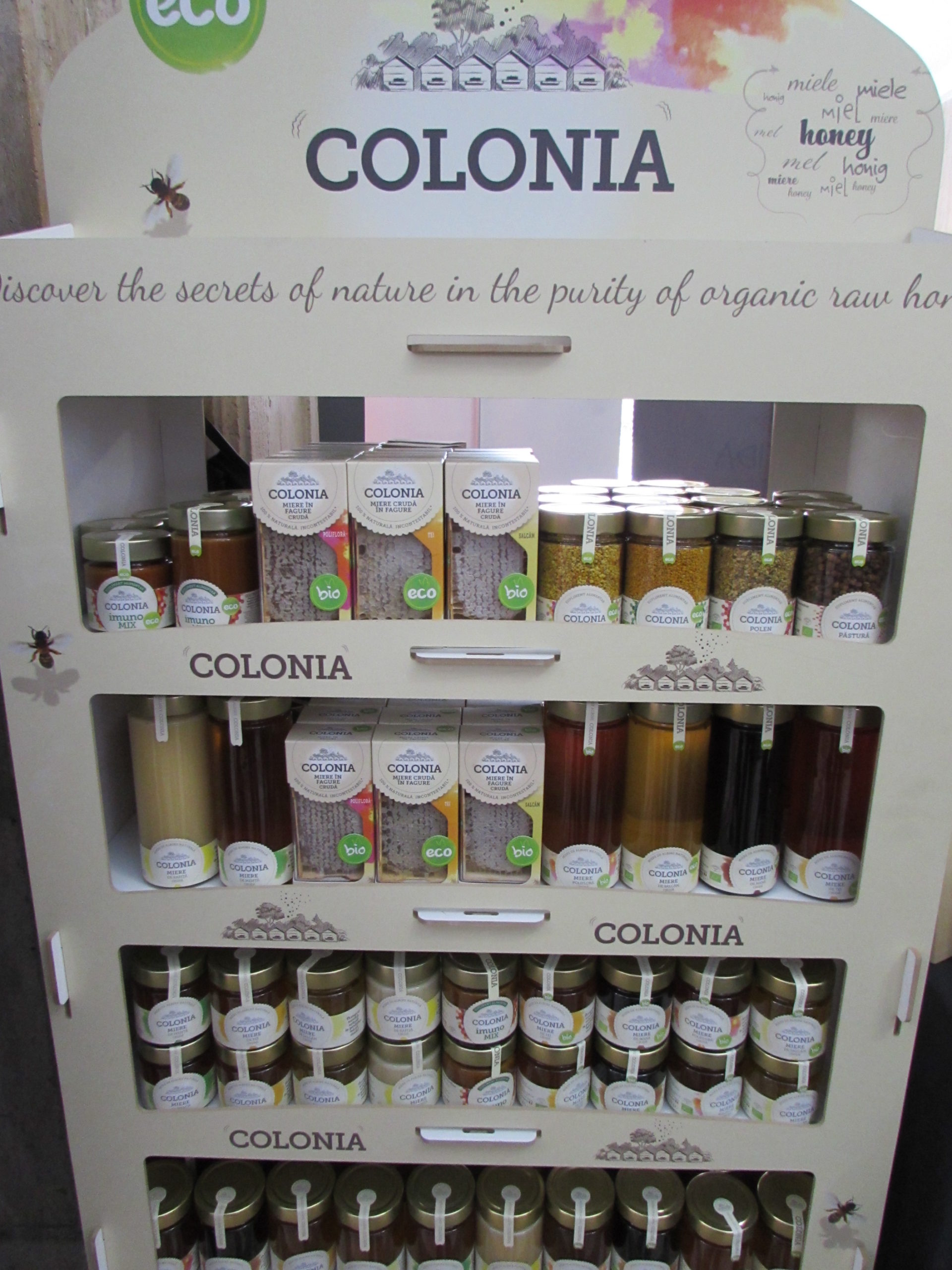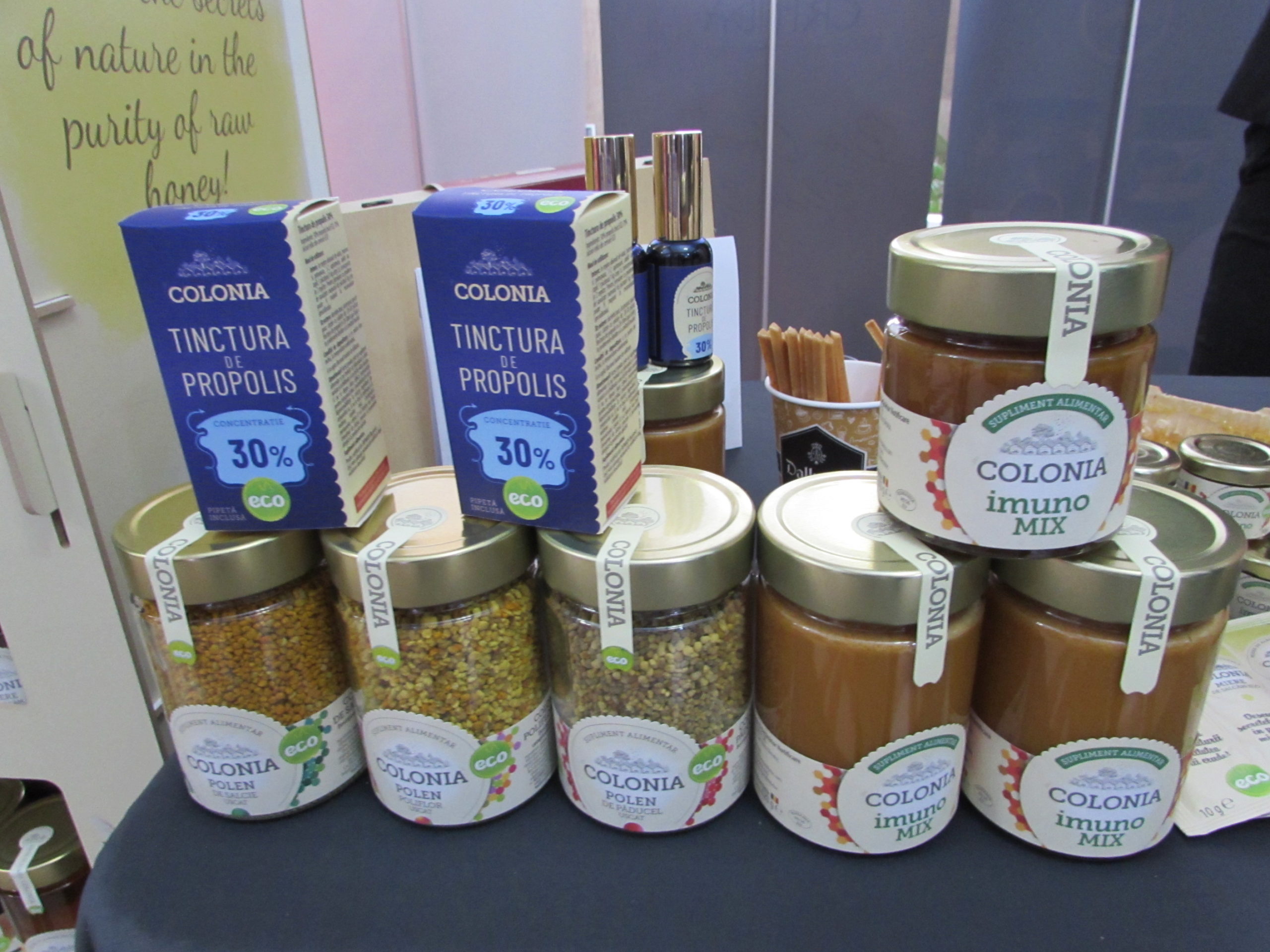 Tot din judeţul Argeş, Curtea de Argeş, au venit producătorii brandului Colonia, cei care adună miere şi multe altele de la aproximativ 1500 (una mie cinci sute) de stupi. Vedeţi şi dumneavoastră ce de lucruri dulci şi sănătoase, sau numai sănătoase, produc harnicii argeşeni.