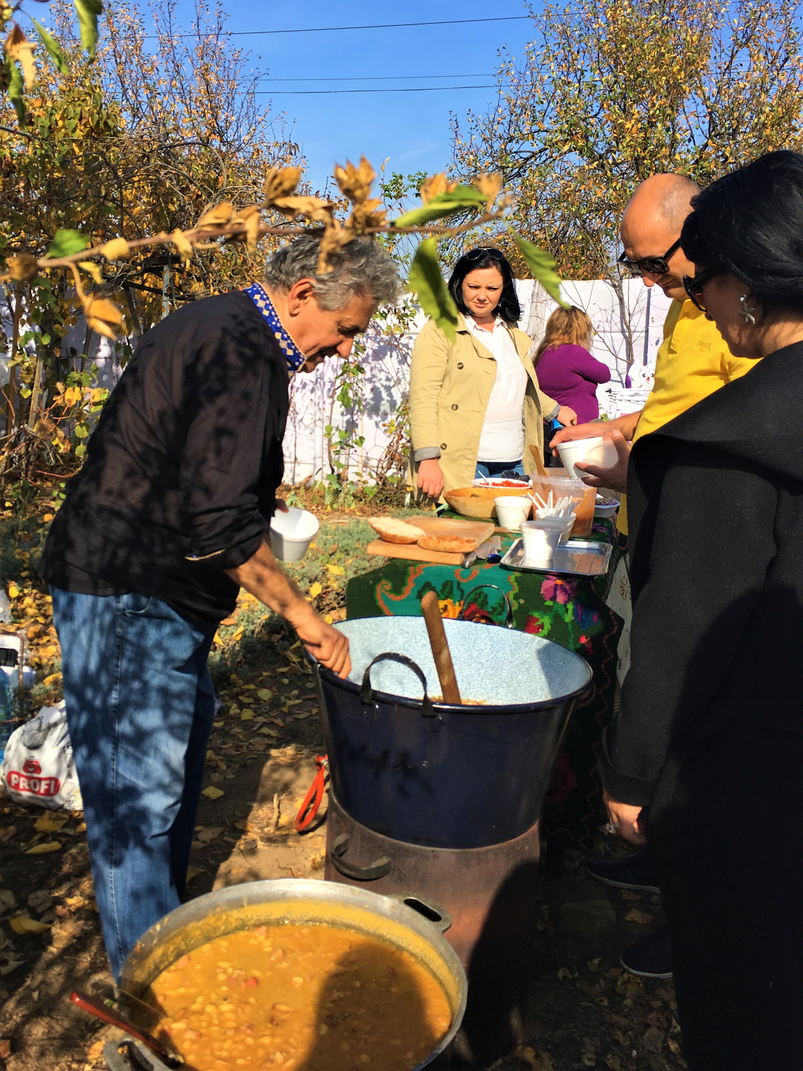 “În primul rând, toamna asta ca un miez de cozonac îți stârnește o poftă de mâncare fantastică. Am avut pastă de jumări unsă pe o lipie coaptă astă-noapte, cu ceapă, cu castraveți murațu, cu piparcă, fasole cu șuncă și am pus la fiert un papricaș ca la oraș în care am pus niște trențe făcute de nemțoaica de nevastă-mea. Lumea stă într-o veselie, se uită la mine, mulți s-au oferit să mă ajute, dar eu i-am refuzat pentru că ei sunt la distracție și eu la muncă”, spune Uica Mihai.