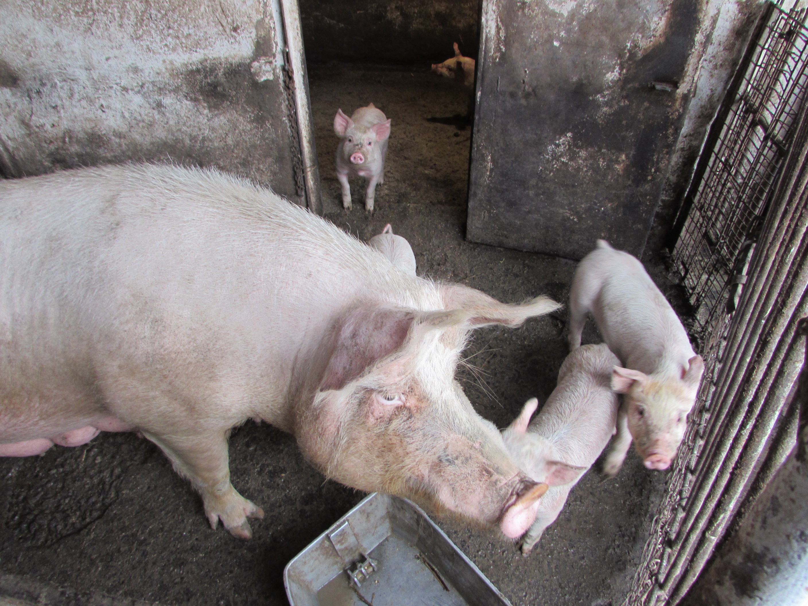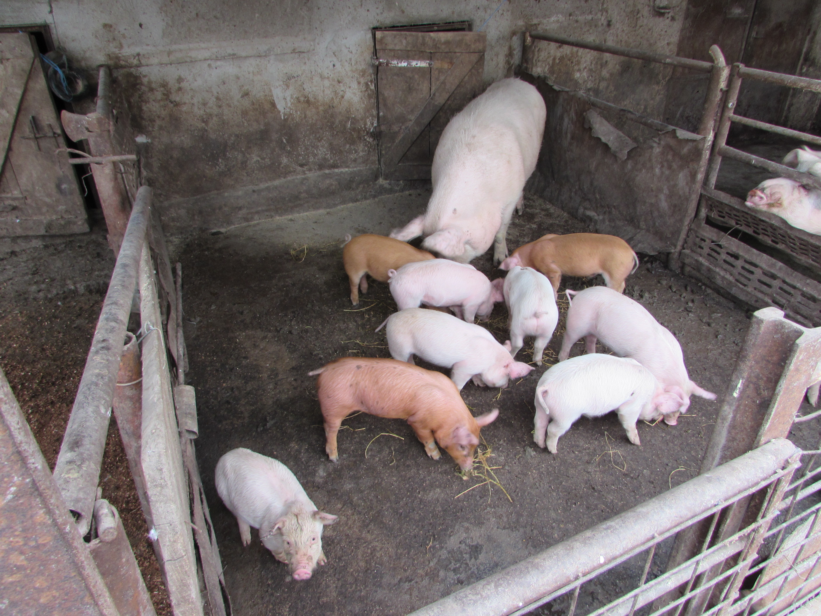 La ferma de la marginea satului ne așteaptă purceii mai mari, scroafele cu purcei, un vier de reproducție, ținut la cură, precum și curtea aproape plină de păsări, deși înmulțirea acestora este în curs. Observați că pe lângă porcii ce se ospătează cu lucernă, există câte unul care se uită la obiectivul fotografic. Pomii înfloriți, bucuria primăverii, vrei nu vrei, îți atrag privirea.