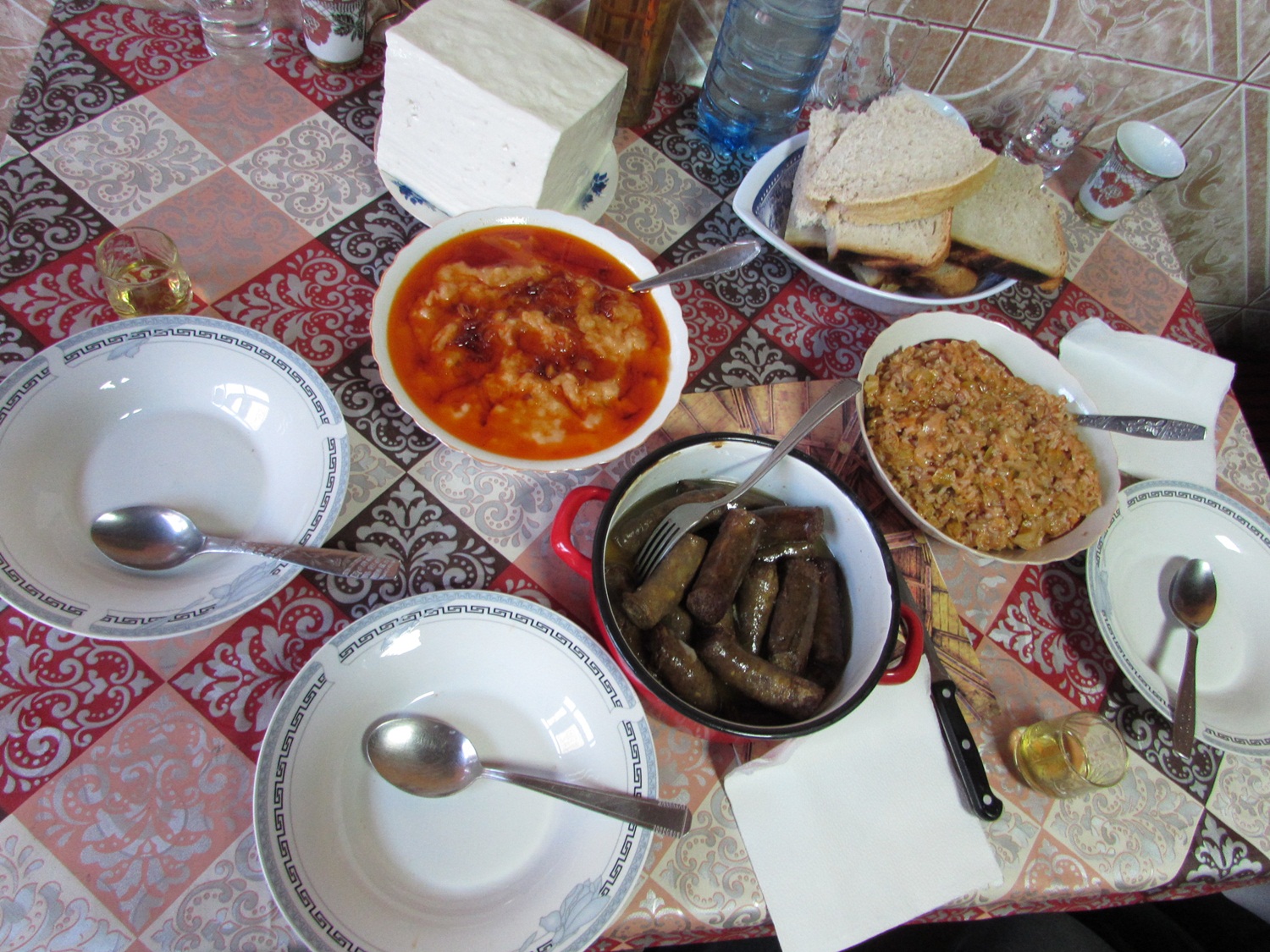 Unde-s animale nu prea ai timp liber. Familia Vidican, Gheorghe și Mioara, au de lucru ba la oi, ba al vaci, ba la porci, ba la câmp, ba în lăptărie, de cloșcă nu mai vorbim, iar dacă le trece cineva pragul, chiar neanunțat, cum a fost cazul nostru, reușesc să pună pe masă bucate de-ți lasă gura apă, chiar dacă sunt de post . Priviți și spuneți că n-am dreptate. Cât de mare este pâinea este deja altă poveste.