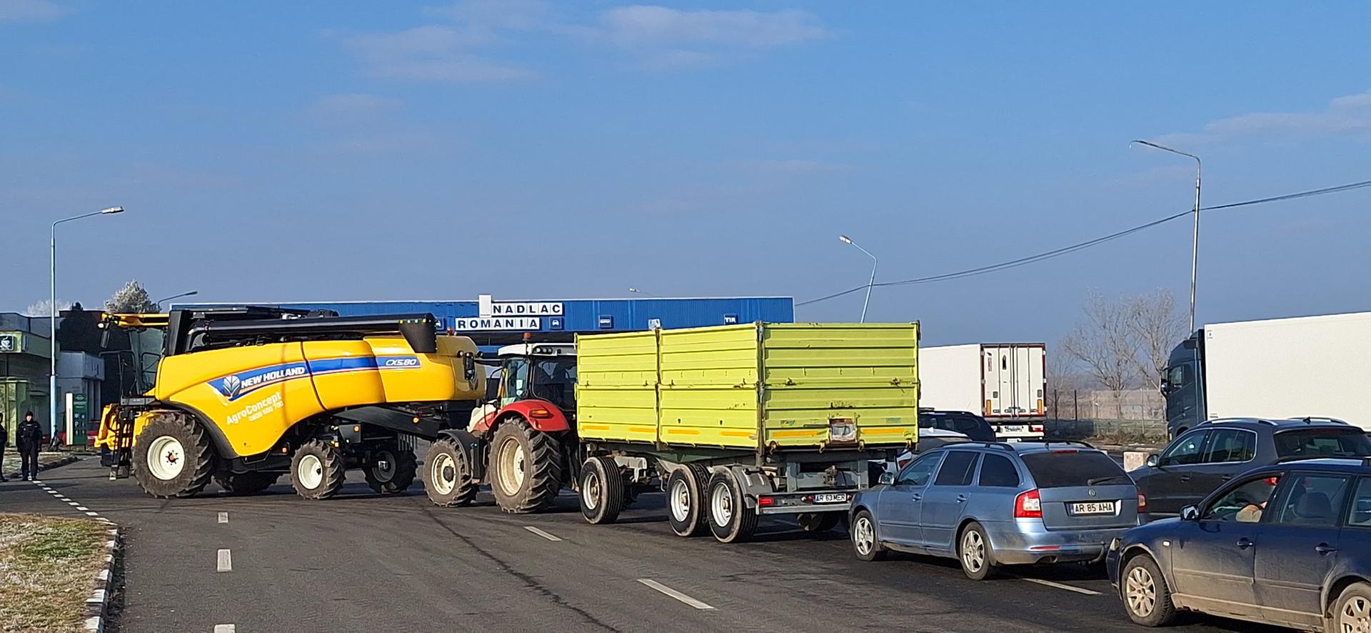 Zeci de fermieri din Arad au protestat pe străzile din orașul Nădlac și pe DN7 către vama Nadlac 1. Protestatarii au venit cu aproximativ 50 de utilaje agricole și au mărșăluit cu viteză redusă, fapt care a afectat circulația către vamă.
