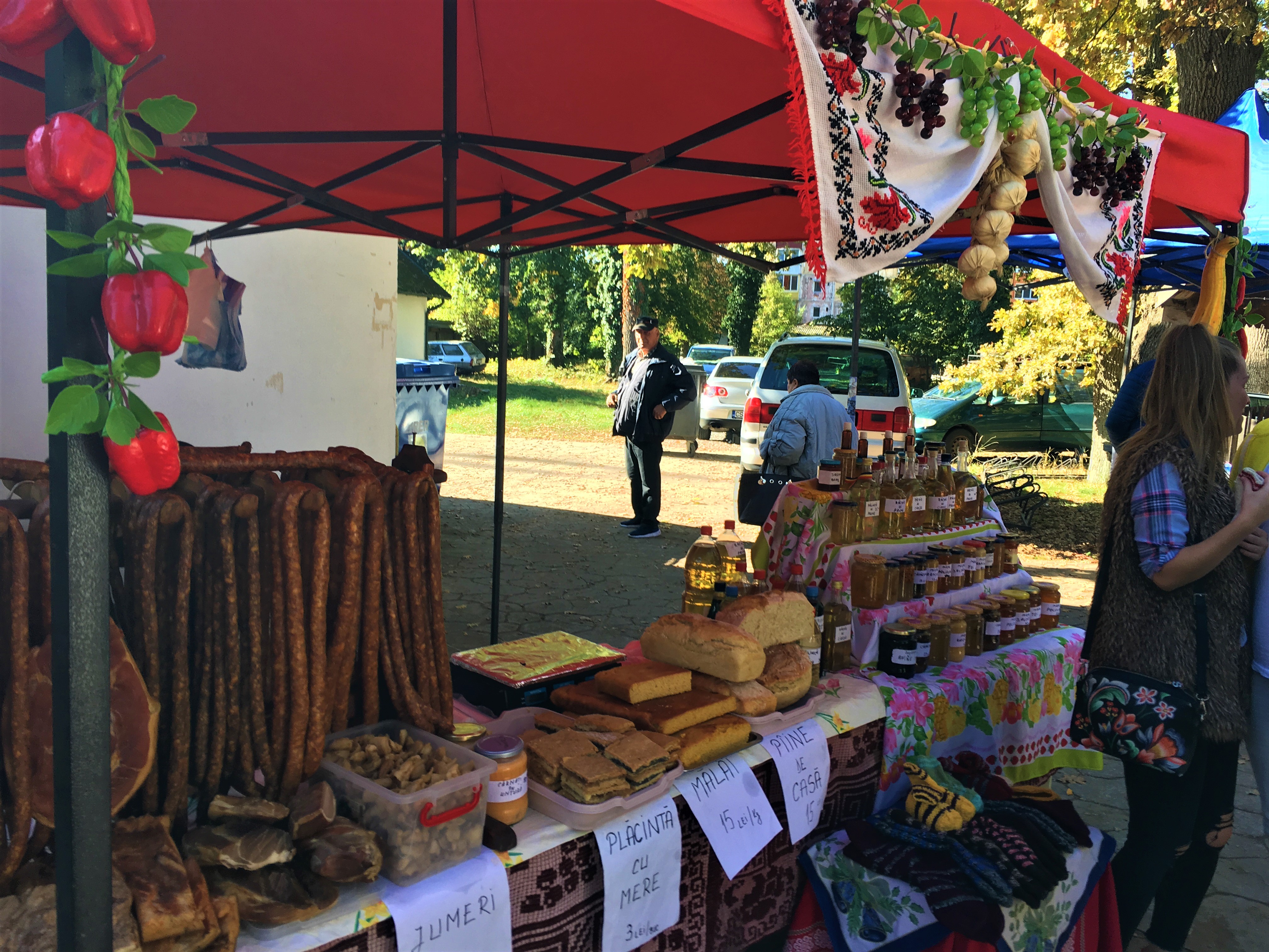 “Avem plăcintă de casă tradițională cu mere, cu mac. Mai avem preparate din carne: cârnați, jambon, cârnați în untură, caltaboși, slănină. Avem cârnați doar de porc, avem cârnați amestec cu vită, subțiri, cârnați cu amestec cu capră și cu vită, deci mai uscați, acești cârnați sunt și un pic pipărați. Totul este produs de noi în casă”, spune Maria Maticheschu, din Soceni.