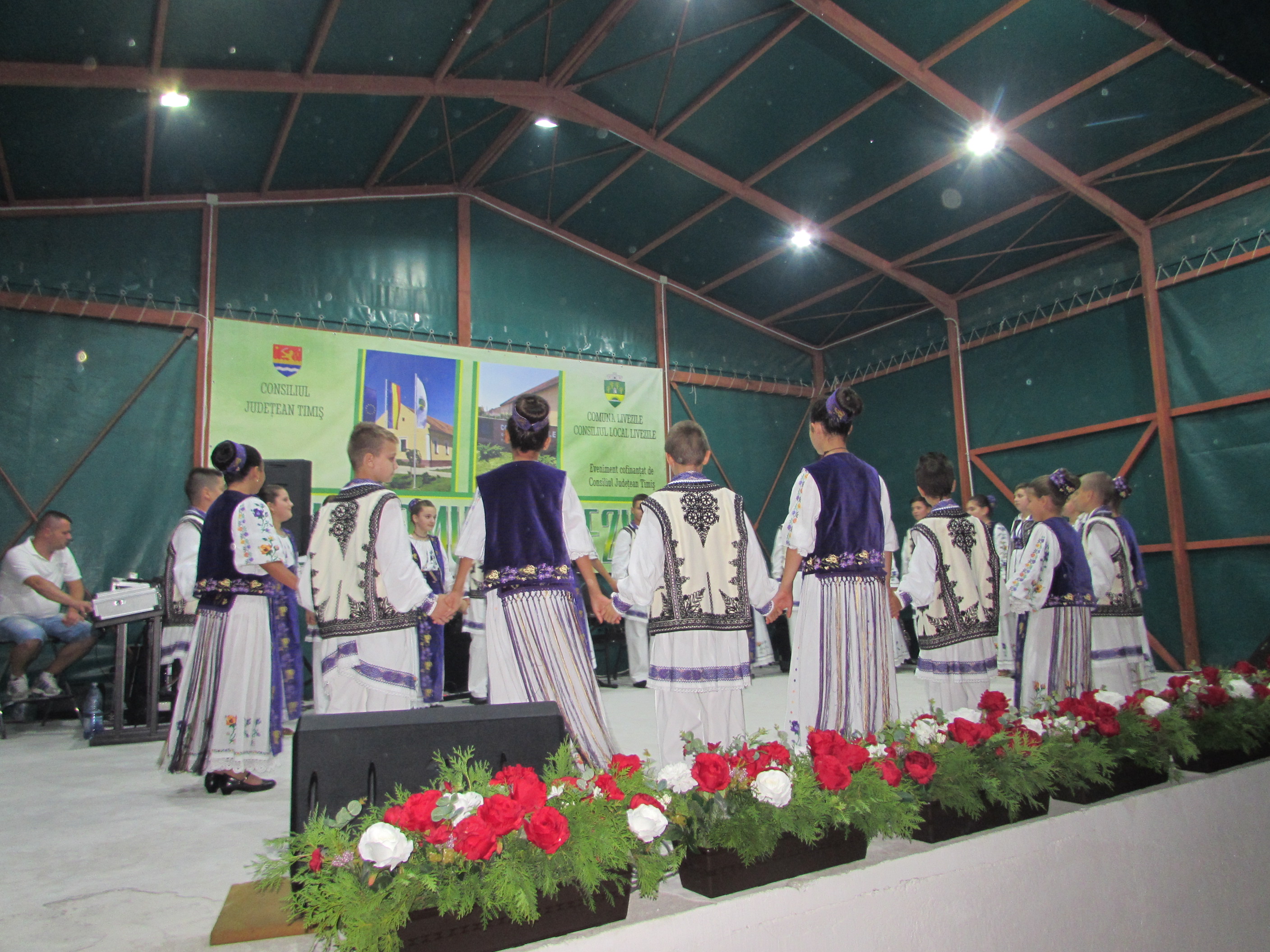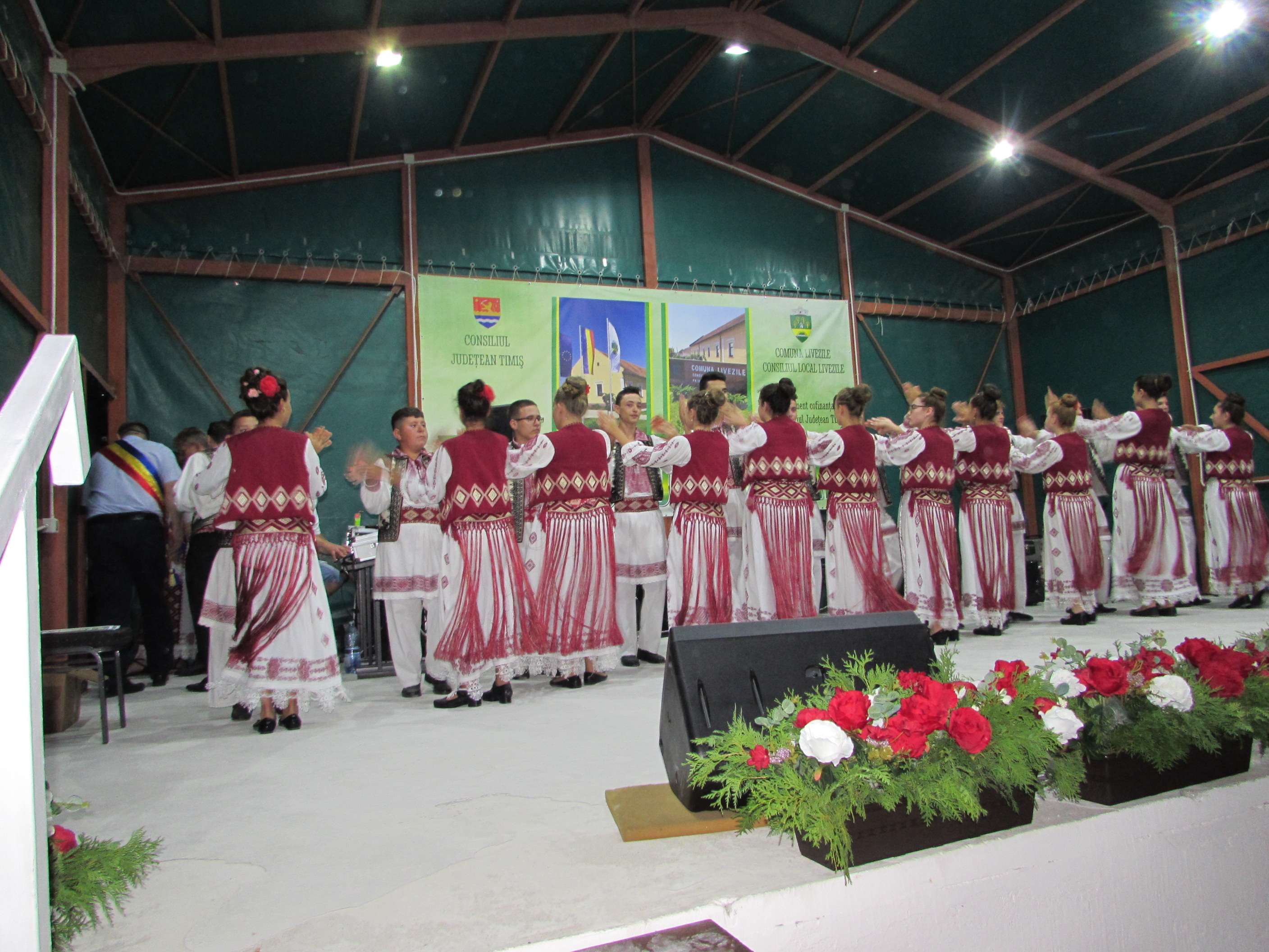 Primii dintre invitați prezenți pe scenă au fost cei de la ansamblul Voitegeana din Voiteg. Între două jocuri, Claudiu Petrovici s-a desprins dintre colegi și a recitat o poezie în grai bănățean.