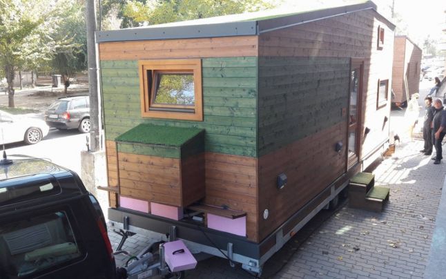 Căsuțele pe roți pot fi admirate de lângă Biblioteca Politehnicii. Este vorba despre cel mai mare și cel mai mic model al celor de la Eco Tiny House, o companie fondată anul trecut de Botond Szakács. Inginer de meserie, secuiul s-a gândit să facă ceva nou în România.