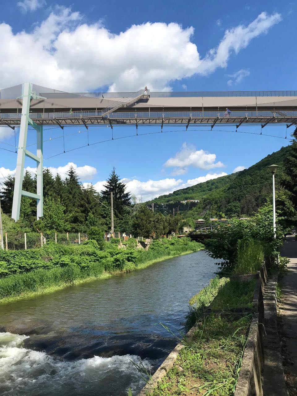 Funicularul va fi transformat într-o pasarelă suspendată de peste 700 de metri, destinată pietonilor și bicicliștilor.