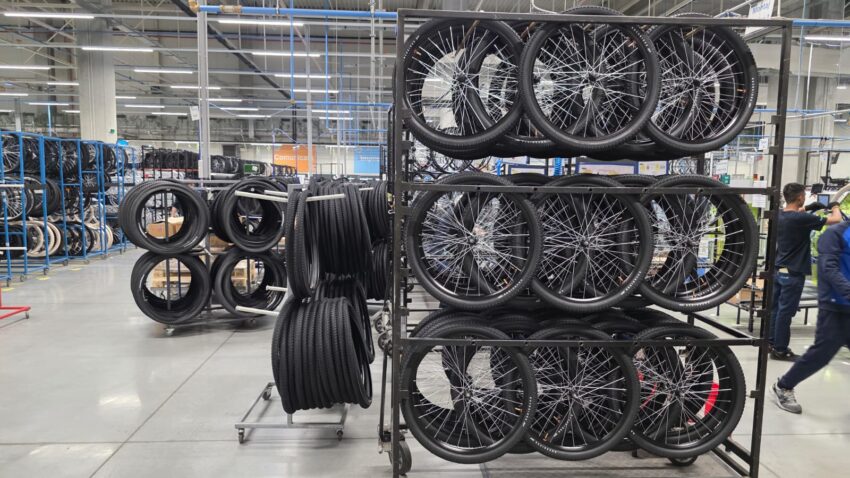 Producția bicicletelor în fabrica de la Timișoara începe cu asamblarea roților. Potrivit managerului Ciprian Vlad în acest departament sunt montate spițele. Doamnele sunt majoritare în acest departament și, momentan, lucrează mai bine decât robotul care poate să facă același lucru, dar nu este la fel de eficient: