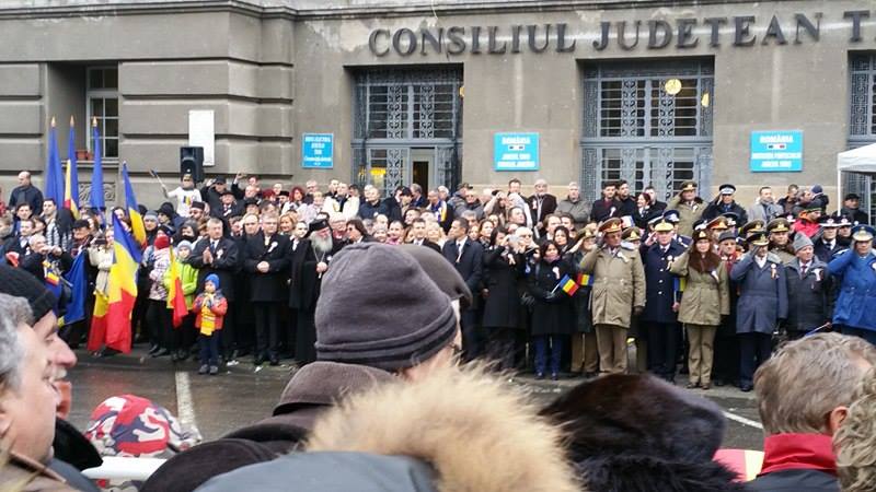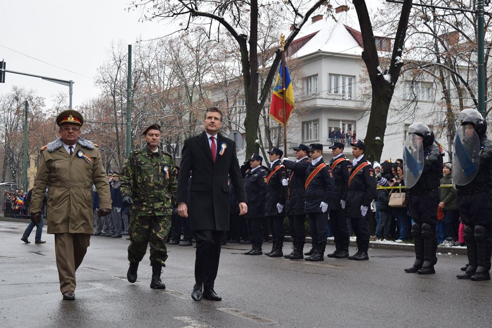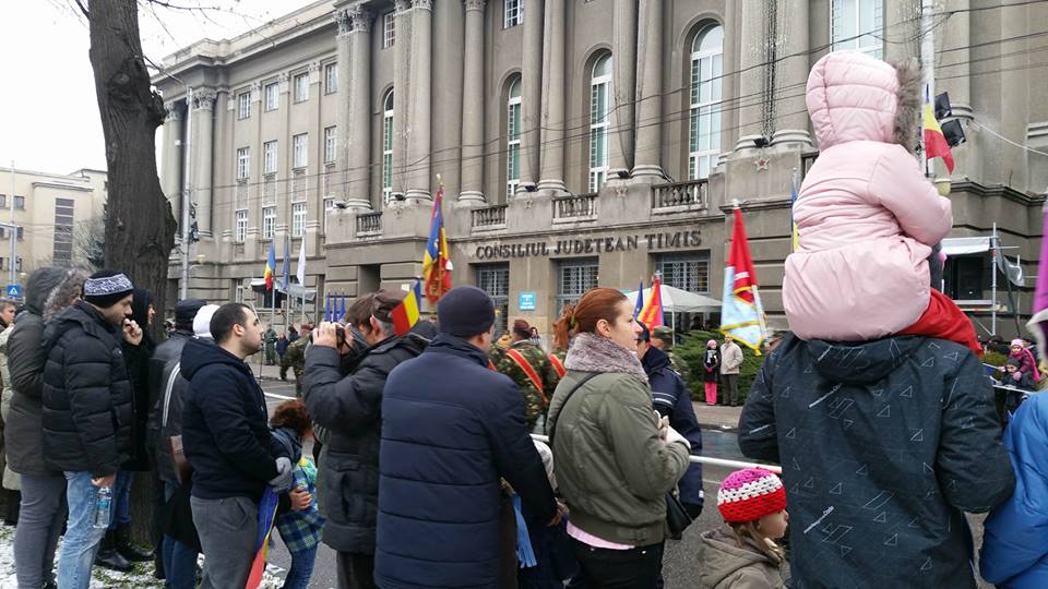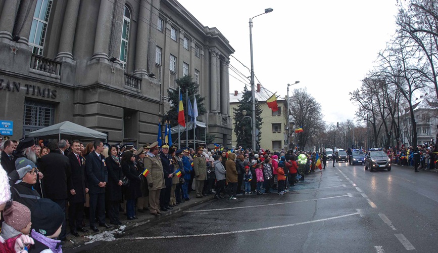 Peste 300 de soldaţi şi specialişti din Ministerul Apărării Naţionale, Ministerul Afacerilor Interne, Serviciul Român de Informaţii, Penitenciarul Timişoara şi Poliţia Locală Timişoara au participat la parada militară organizată cu ocazia Zilei Naţionale a României, pe Bulevardul Revoluţiei. Timișorenii, în special copiii, s-au bucurat de defilarea tancurilor și a blindatelor, aplaudând câinii polițiștilor și jandarmii. Spre final, cerul Timișoarei a fost brăzdat de două elicoptere militare. Ceremonia s-a încheiat cu prezentarea onorului de către Brigada 18 Infanterie Banat.