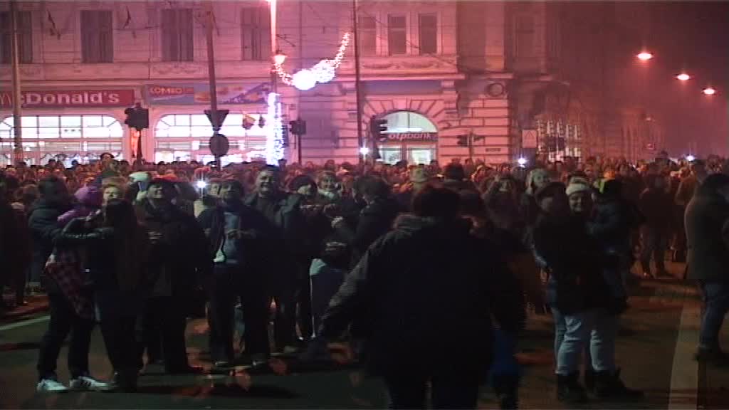 La Arad a devenit o tradiţie ca mii de oamenii să meragă în faţa primăriei la trecerea dintre ani pentru a sărbători Revelionul. La petrecerea în aer liber din acest an au fost invitaţi să cânte mai multe formaţii locale. Astfel, pe scena din faţa Palatului Administrativ au urcat, de la ora 22.30, cu începere de la ora 22.30, Nova Band, Hidro Grup 8 şi Q Band şi Claudia Iuga.