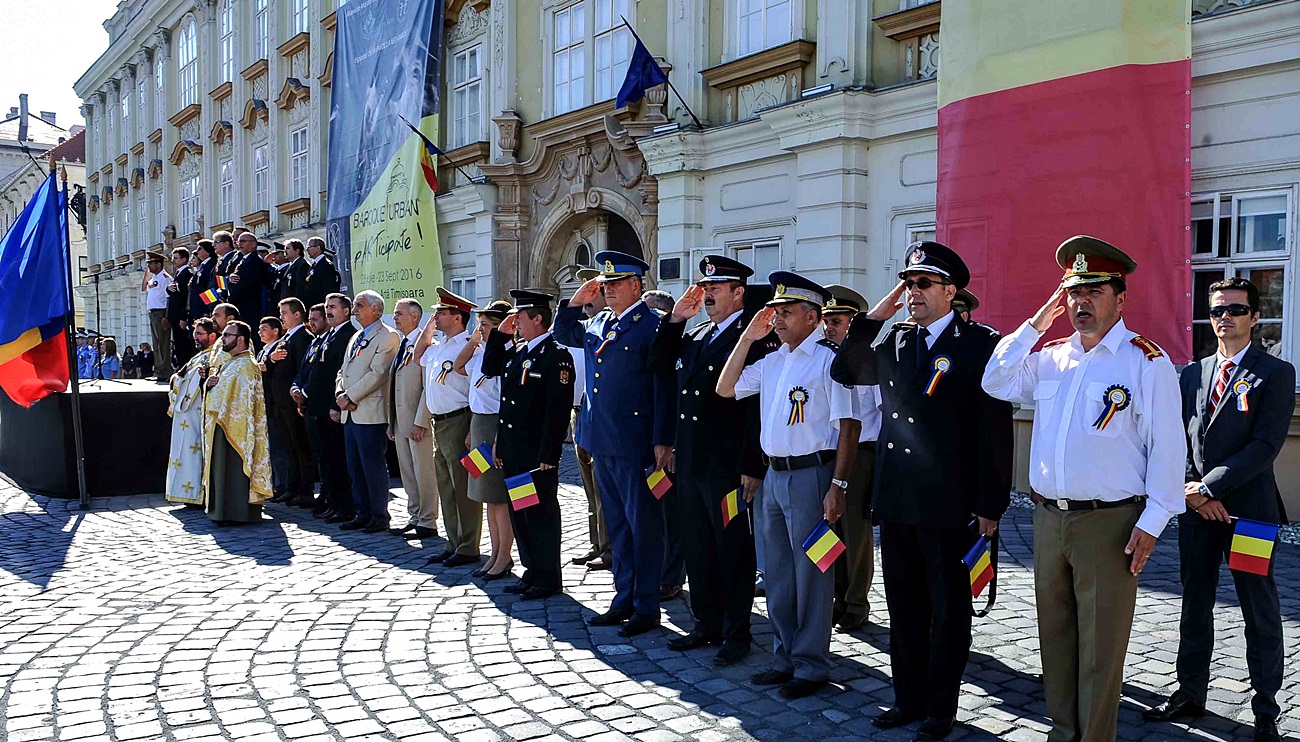 Primarul Nicolae Robu a subliniat că Timișoara a devenit orașul cu cele mai multe investiții, cea mai ridicată calitate a vieții și cele mai mari exporturi după capitală. Au fost prezenți prefectul Mircea Băcală, vicepreședintele Consiliului Județean Timiș și autoritpți locale. Evocarea din Piața Unirii s-a încheiat cu muzică de fanfară.