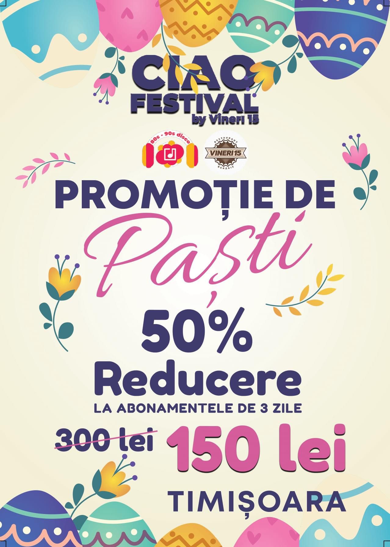 Ciao Festival va fi un eveniment pentru întreaga familie. Scena 2 îi așteaptã între orele 12 și 15 pe iubitorii de folclor, iar pe scena ”Princhindel” vor urca , între  orele 9 și 12, Ceata lui Zâmbilici, Teatrul ”Junior, Teatrul ”Prichindel”, Clopoțica Bubu , Roxana Clopotaru.