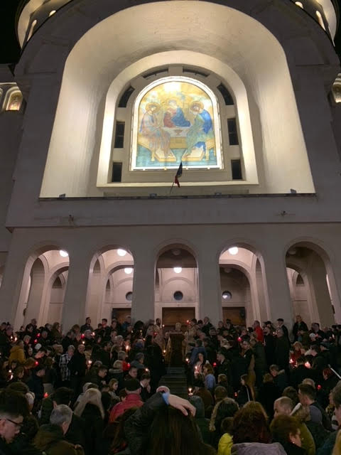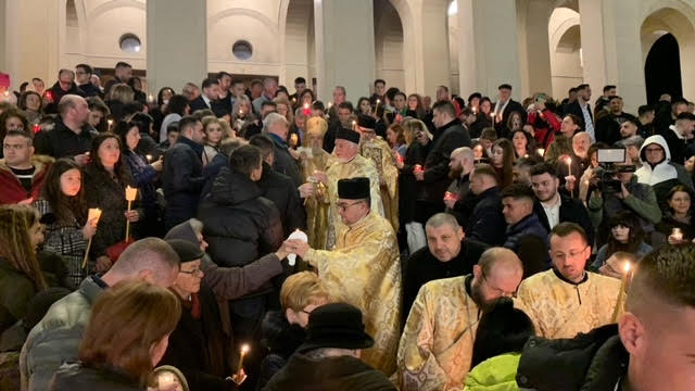 La Catedrala Arhiepiscopală “Sfânta TreimeȚ din Arad, slujba Învierii a fost oficiată de IPS Timotei, arhiepiscopul Aradului, împreună cu un sobor de preoţi şi diaconi.
