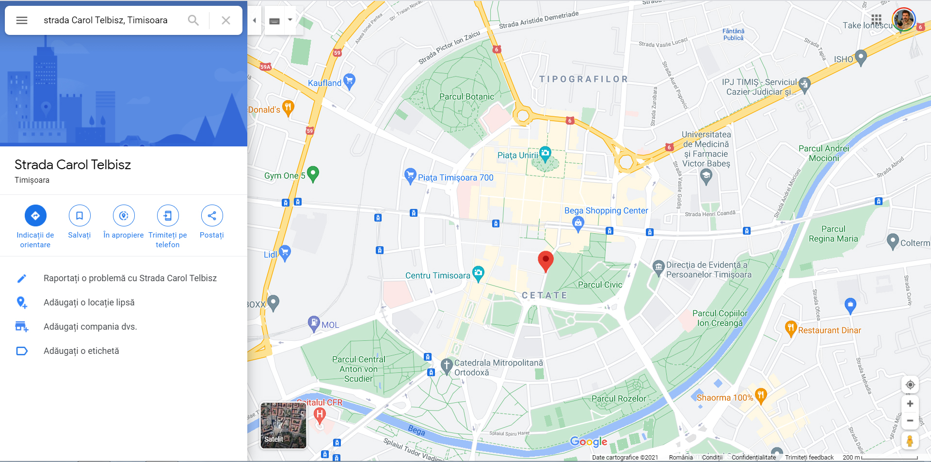 De asemenea, aveţi la dispoziţie butonul Search, lupa din dreapta sus, unde puteţi căuta o anumită stradă, sperând că am radiografiat-o deja. Dacă (încă) nu am trecut pe acolo, fiţi convinşi că vom veni curând. Pentru a urgenta abordarea ei, aşteptăm un mesaj conform paragrafului de mai sus!