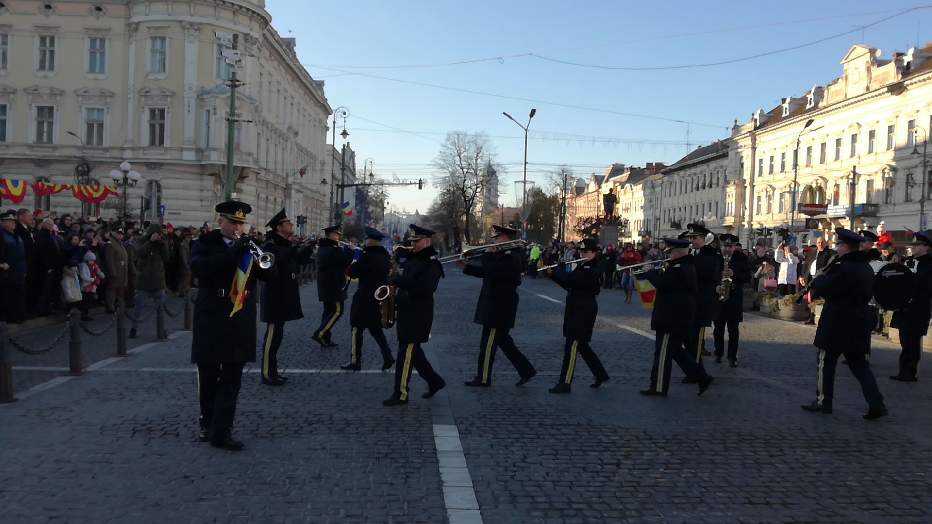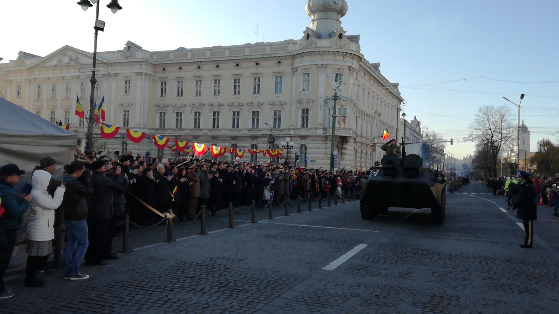 O defilare la care au participat peste 200 de militari, pompieri, polițiști și jandarmi, însoțiți de tancuri, tehnică de luptă și mașini de intervenție a avut loc prin centrul Aradului în prima parte a zilei de 1 decembrie. Un moment aparte a fost prezența copiilor unor polițiști și jandarmi, îmbrăcați în uniformele insituțiilor din care fac parte părinții lor.